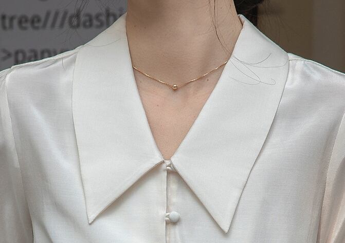 尖った襟や小さめのボタンなどが洗練された、さり気ないエッジの利いたデザインです。