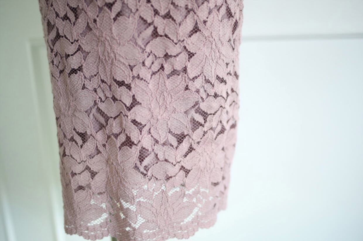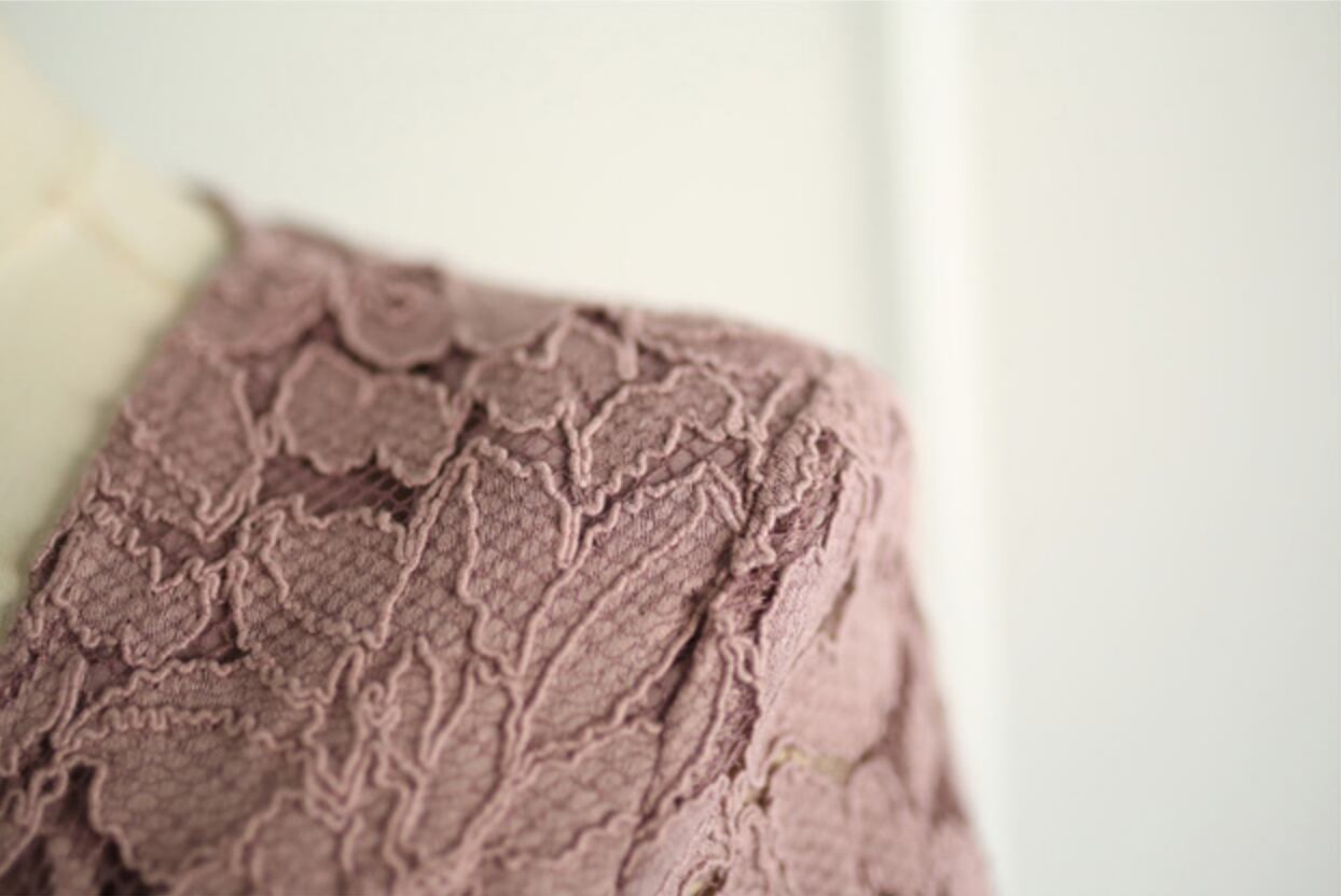 フラワーレースの生地とフェミニンなシルエットがポイントのドレス。