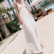 背中見せとキャミタイプがかわいい、マキシスカートで脚長効果も期待できるワンピース。