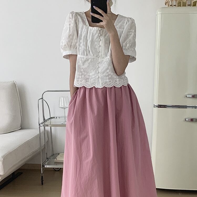 裾までバルーン仕立ての柔らかいシルエットがフェミニンなアイテムです。