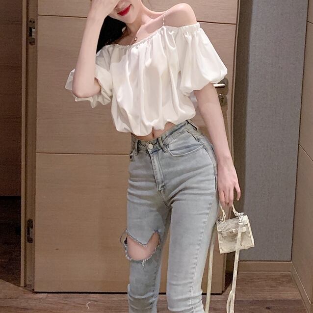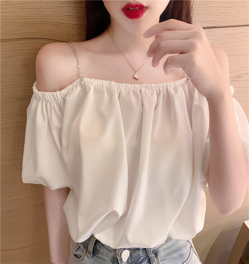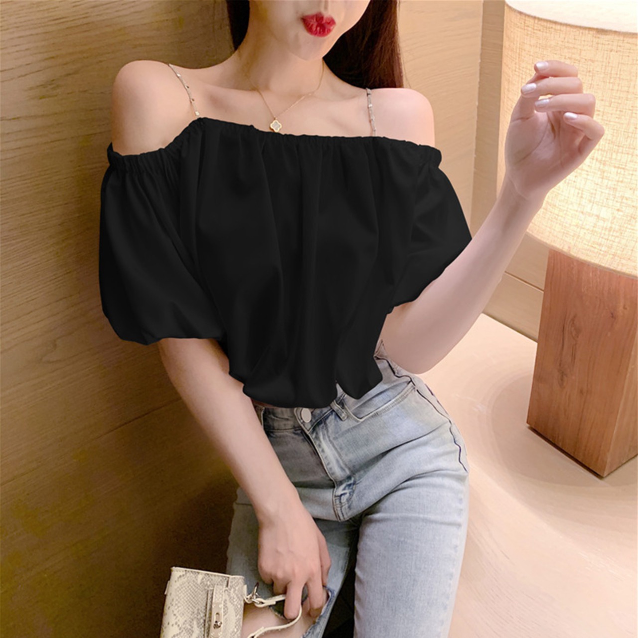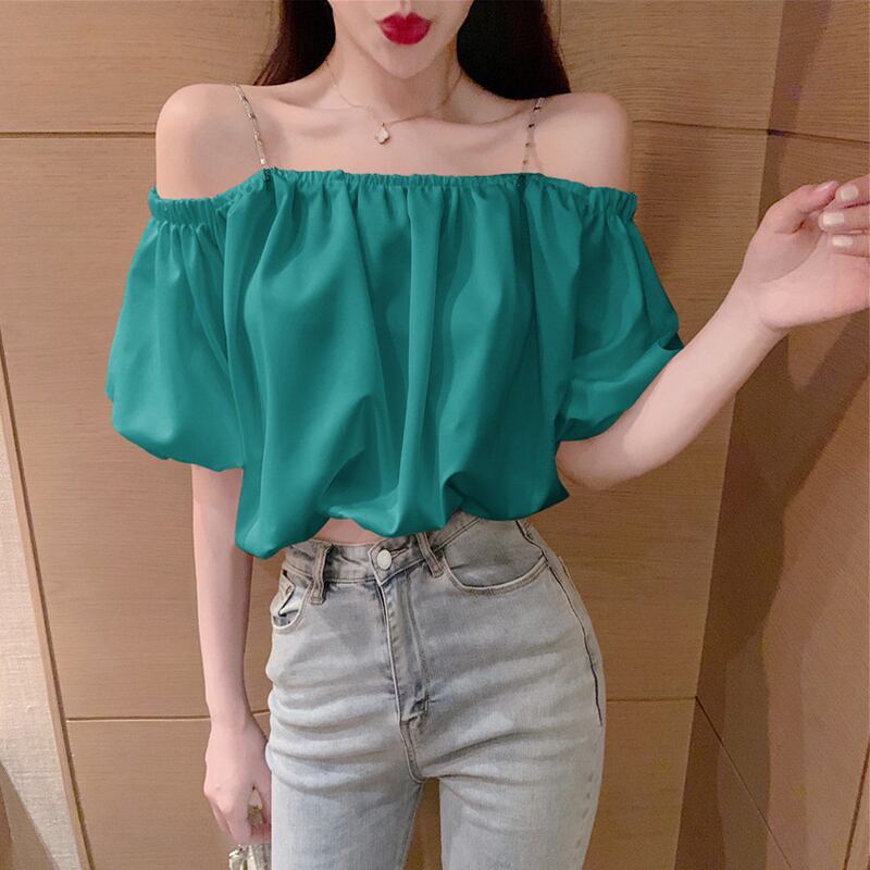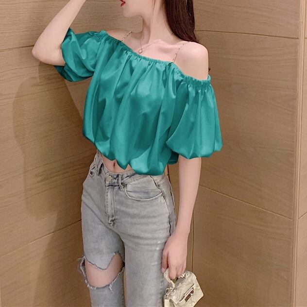 トップス シャツ レディース ブラウス 袖あり 半袖 スクエアネック オフショルダー クロップ丈 チェーンストラップ パフスリーブ ギャザー モノトーン フレア フリル かわいい 大人可愛い きれいめ シンプル カジュアル 大人 上品 おしゃれ お洒落 レトロ 大人女子 こなれ感 ラフ ラブリー ガーリー 個性的 クール モード系 エレガント モダン 主役級 存在感 抜け感 無地 春 夏 10代 20代 30代 40代 50代 レディース OL 通勤 学生 通学 ホワイト ブラック グリーン