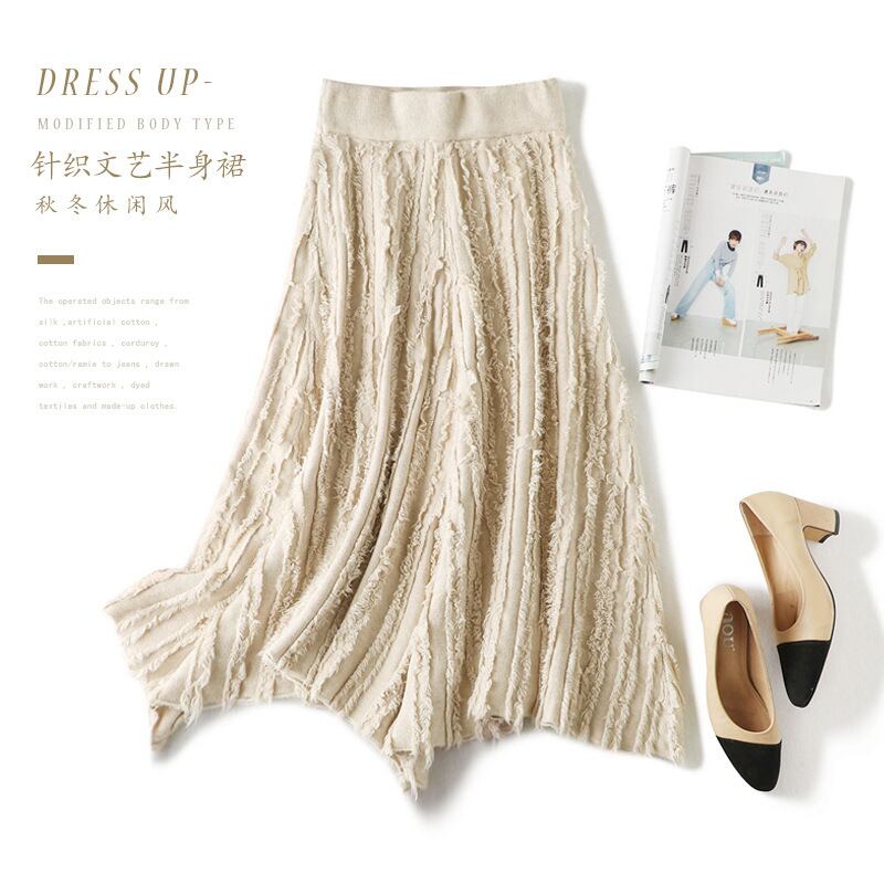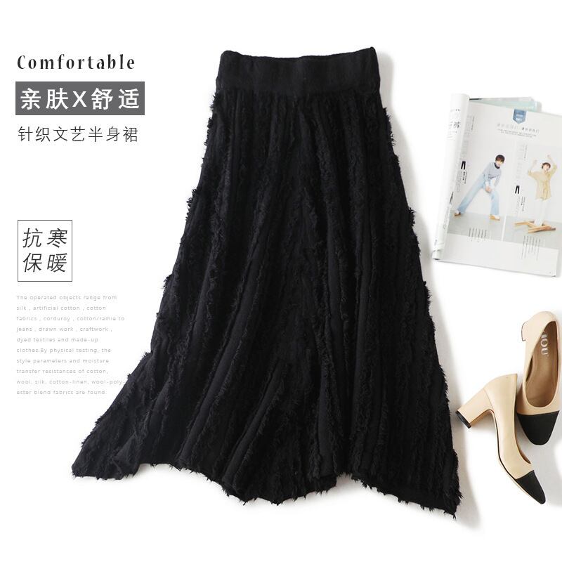 スカート ロング スカート フレア スカート ハイ ウエスト Aライン ミモレ 丈 ワイド ゆったり 太め アシンメトリー ニット 美脚 ウエスト ゴム 動きやすい かわいい 可愛い あったか リラックス 楽ちん 冬 ウィンター オフィス カジュアル レディース 女性用 30代 40代 低身長 大きめ ゆったり ゆる 黒 ブラック 灰色 グレー ベージュ オフホワイト 大人カラー 秋カラー