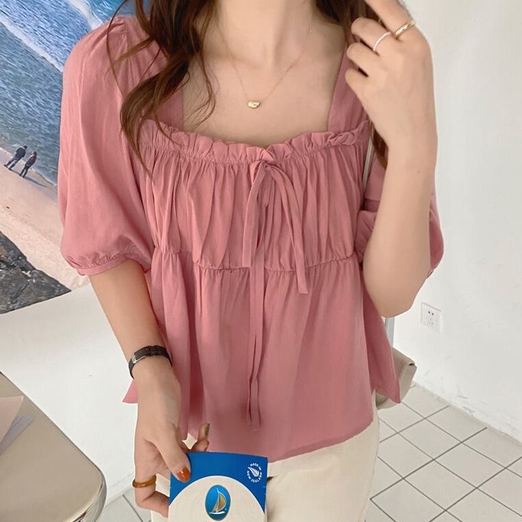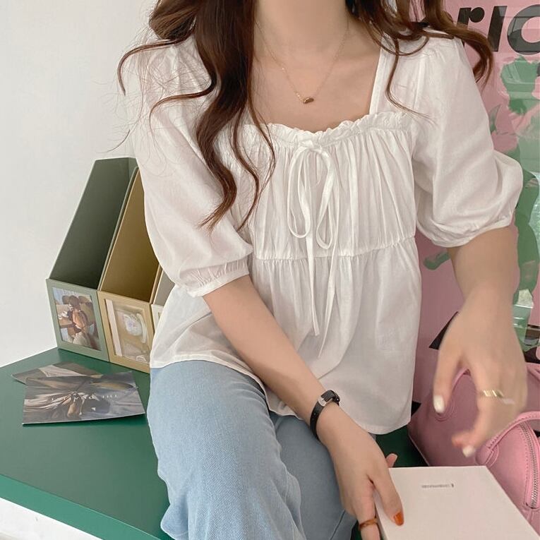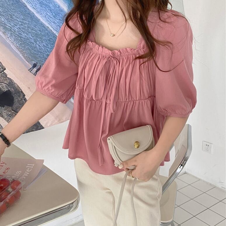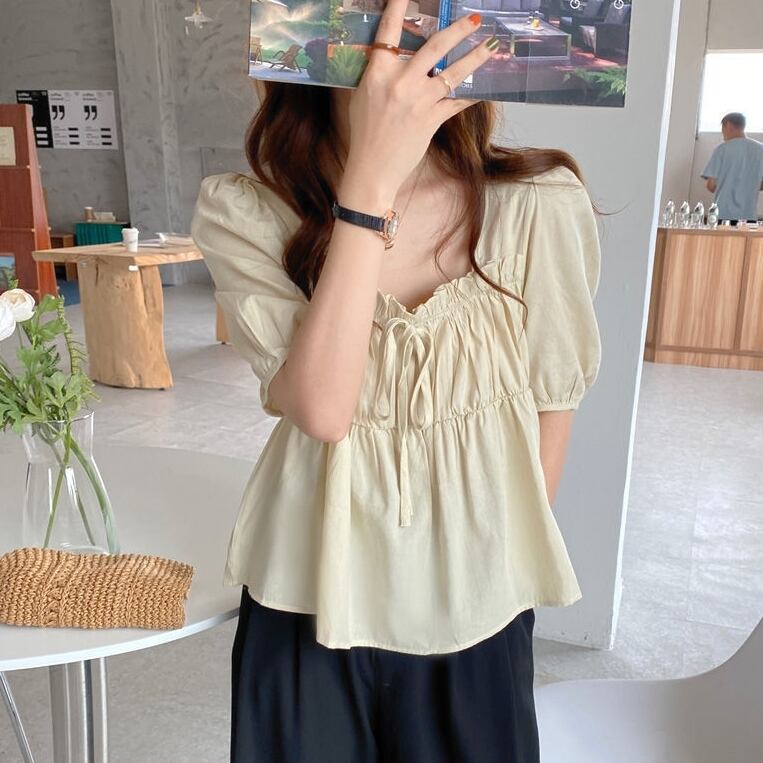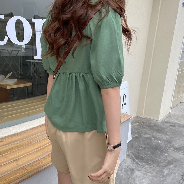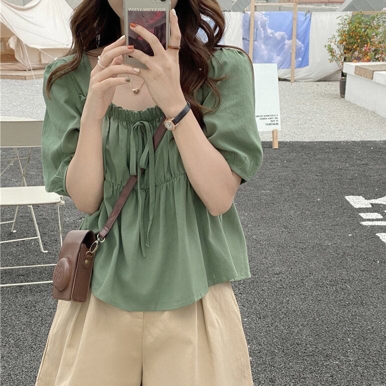トップス シャツ レディース ブラウス 袖あり 半袖 パフスリーブ スクエアネック ギャザー フレア リボン ショート丈 フリル かわいい 大人可愛い きれいめ シンプル カジュアル 大人 上品 おしゃれ お洒落 レトロ 大人女子 こなれ感 ラフ マニッシュ ラブリー キュート ガーリー 個性的 クール モード系 エレガント モダン 主役級 存在感 フォーマル 抜け感 無地 春 夏 10代 20代 30代 40代 50代 レディース 女性用 ビジネス OL 通勤 学生 通学 グリーン