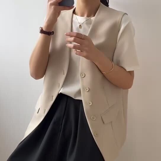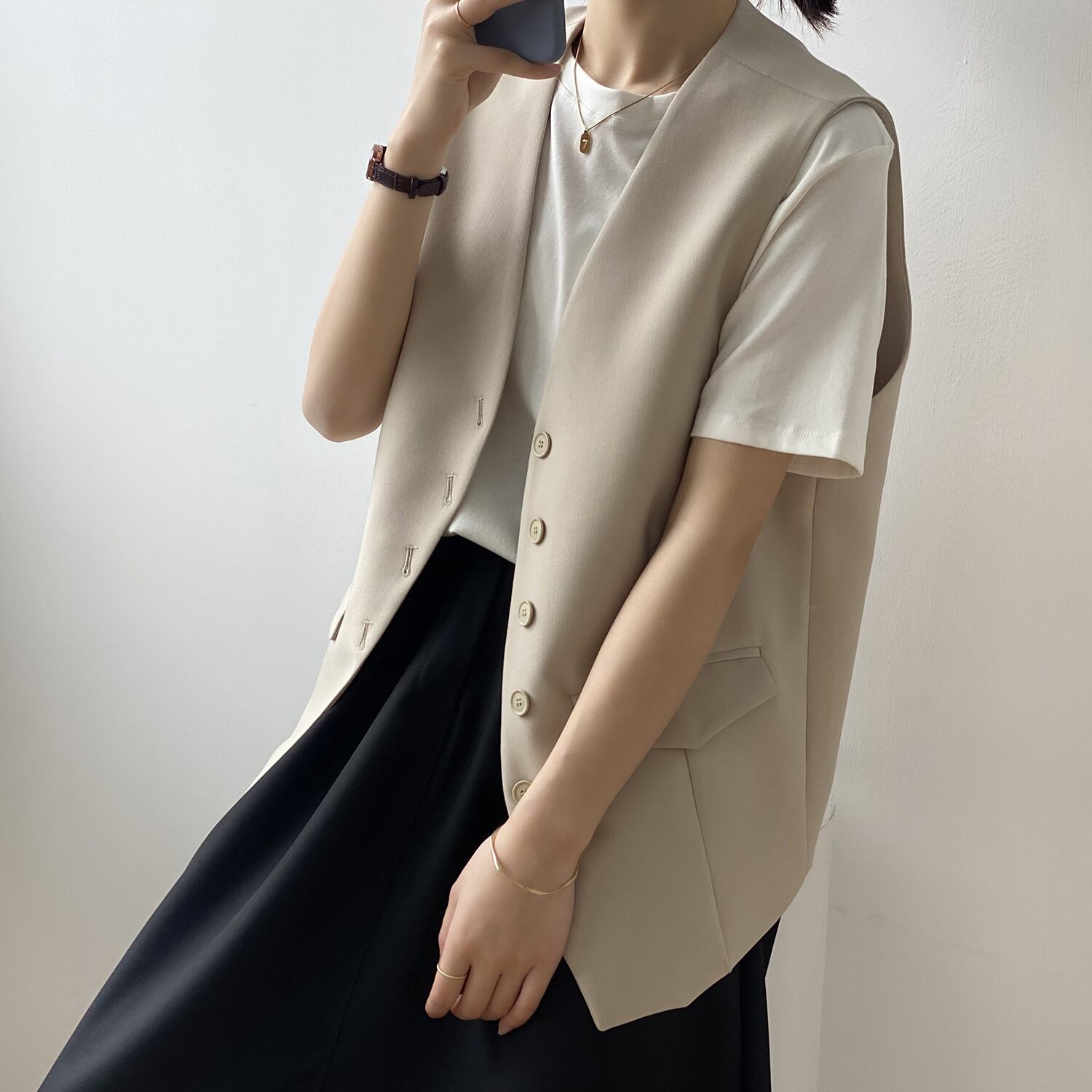 さらっと羽織るだけで今季らしいコーディネートが完成するショート丈のジレ。