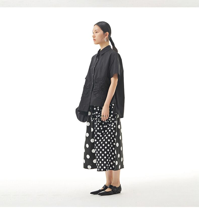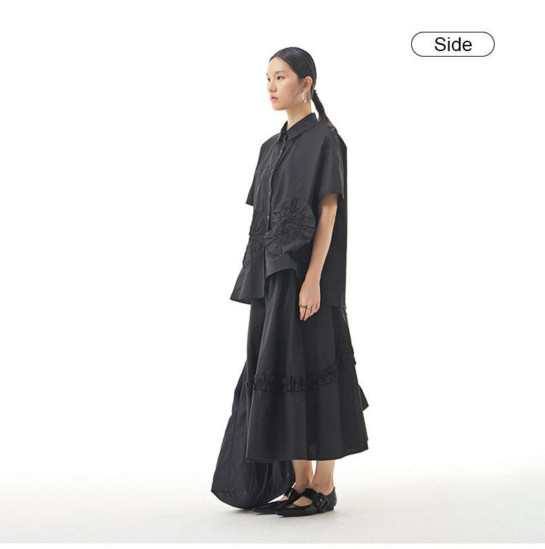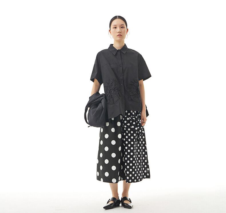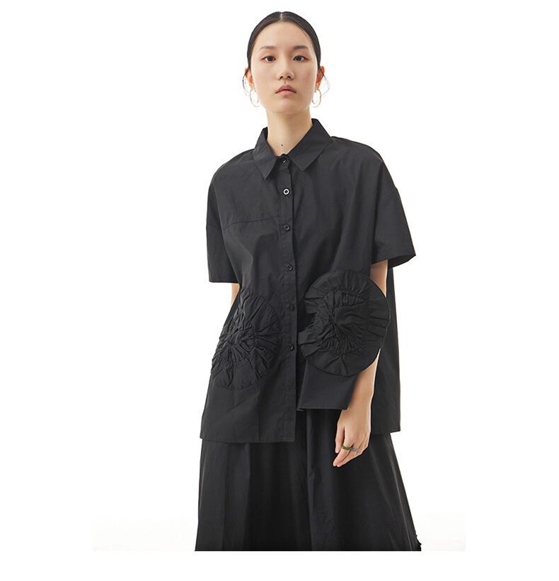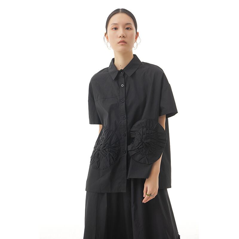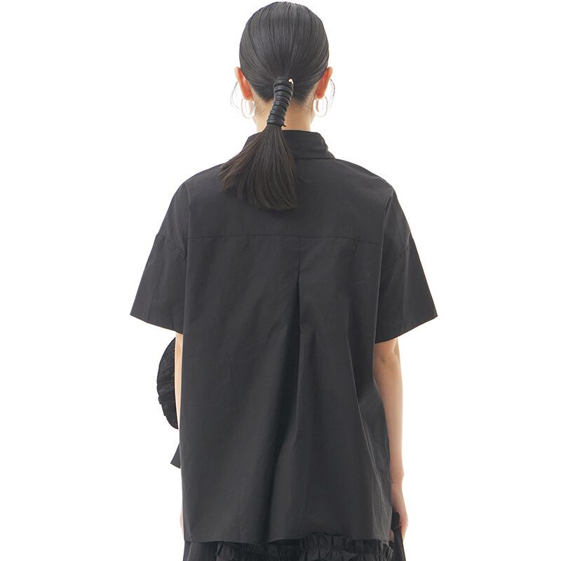 プリーツのラウンドステッチが個性的なおしゃれなブラウス。