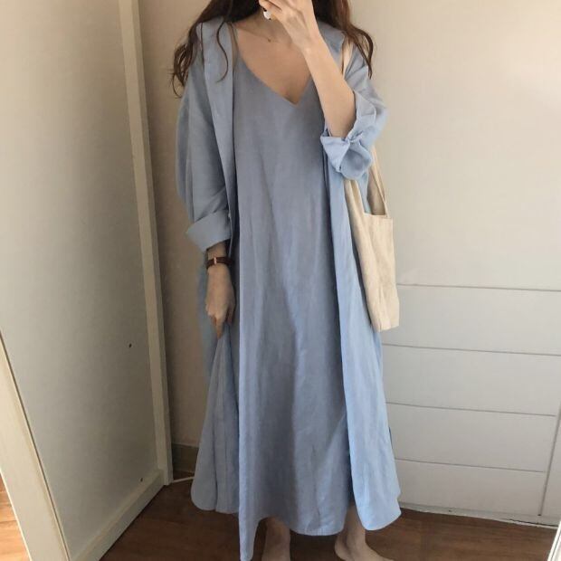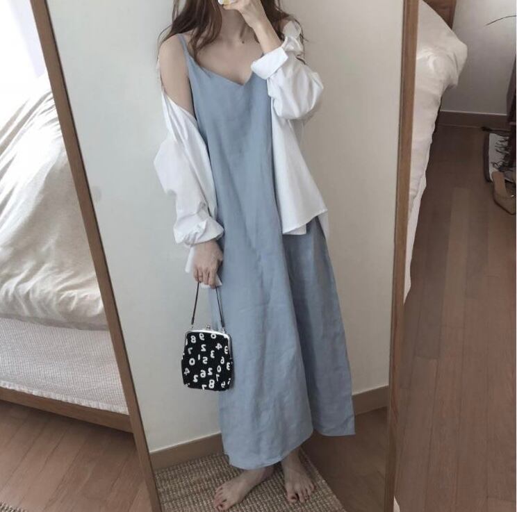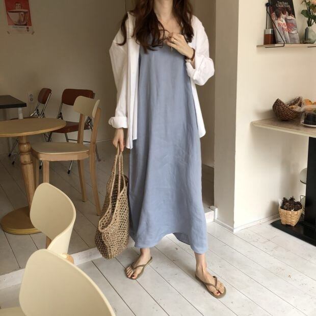 ワンピース ロング丈 マキシ キャミソール 袖なし 肌見せ Vネック ゆったり ワントーン 無地 ベージュ ブルー 水色 ブラック お腹周りカバー ランチ ママコーデ お出かけ 散歩 レジャー 旅行 観光 涼しげ 海 ビーチ リゾート プール デート 普段使い 通勤 夏 春 秋 サマー オータム スプリング 薄手 大人女子 カジュアル スポーティー ナチュラル シンプル 20代 30代 高校生 送料込み 送料無料