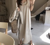 涼しげなゆったりキャミソールタイプのワントーンワンピース。