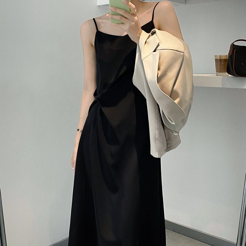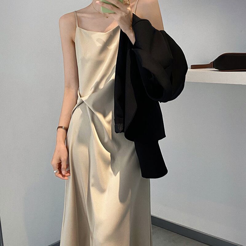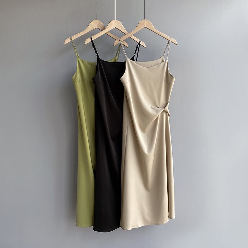 ワンピース キャミソール ドレス 袖なし ウエストマーク ハイウエスト 脚長効果 スタイルアップ Vネック ワントーン 無地 グリーン ブラック 黒 シャンパン ミディ丈 スリム 細身 夏 サマー お洒落 おしゃれ オシャレ エレガント 大人女子 上品 きらいめ 綺麗系 セクシー 二次会 ホームパーティー 普段使い デート ディナー リゾート ビーチ 海 20代 30代 アラサー レディース 送料無料 送料込み
