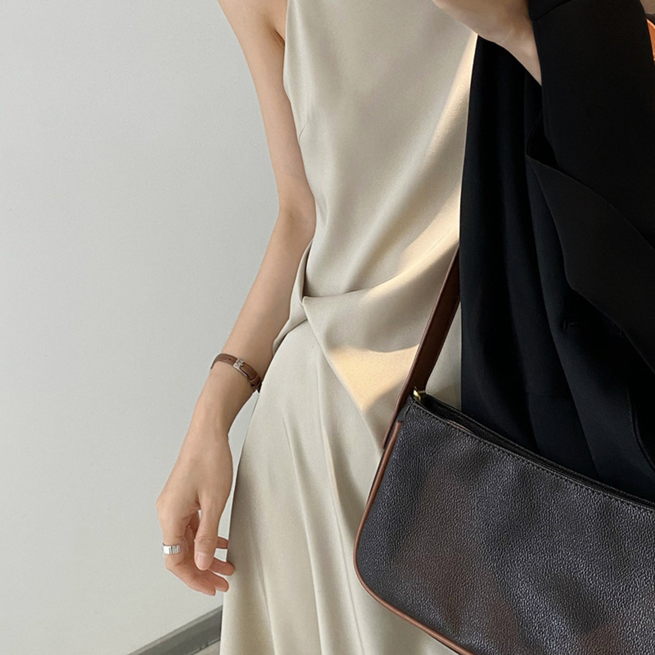 エレガント感のある上品なノースリープワンピース。