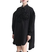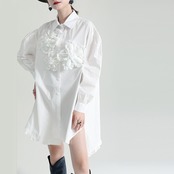 胸元のフラワーデコレーションが個性的でワンピース。