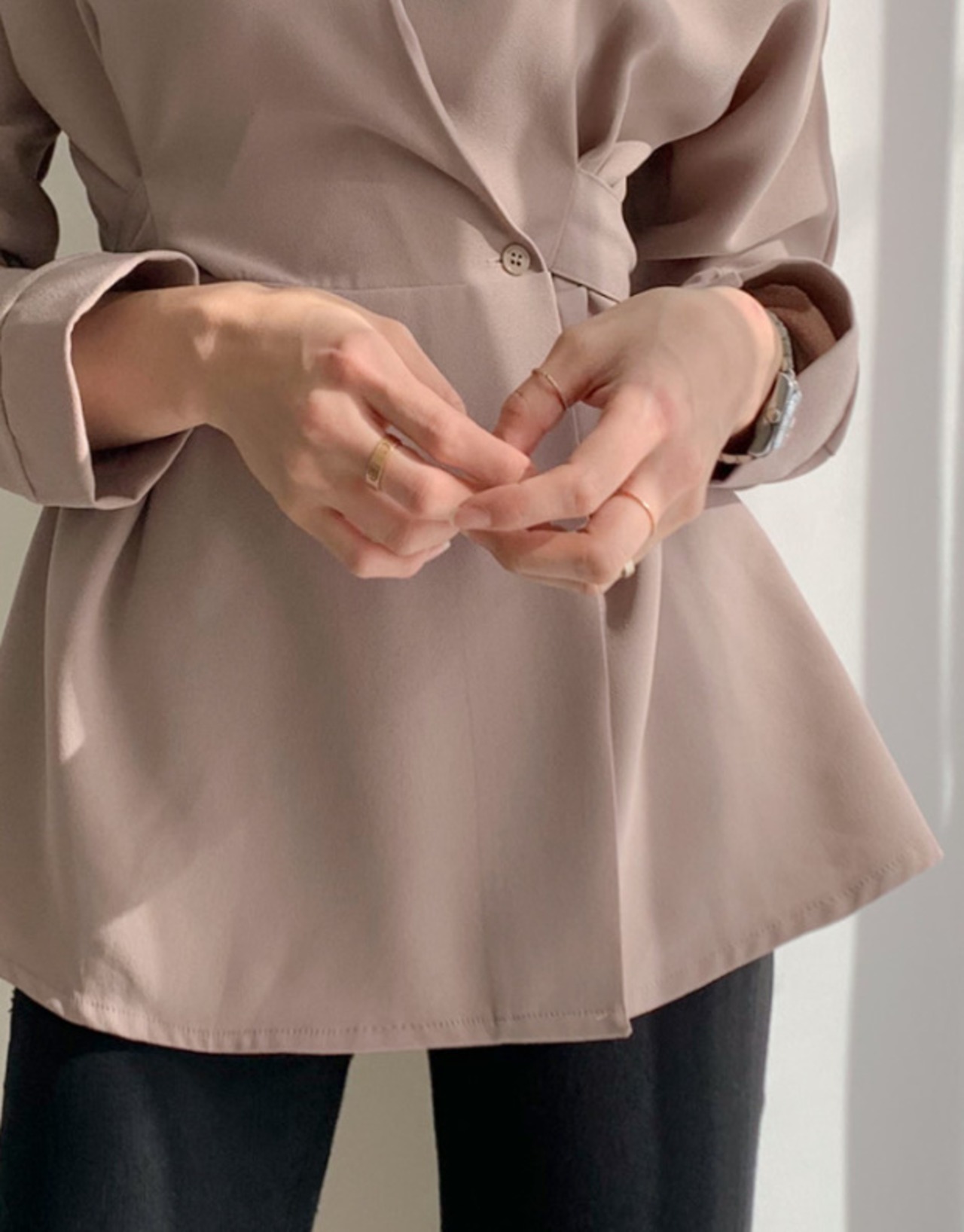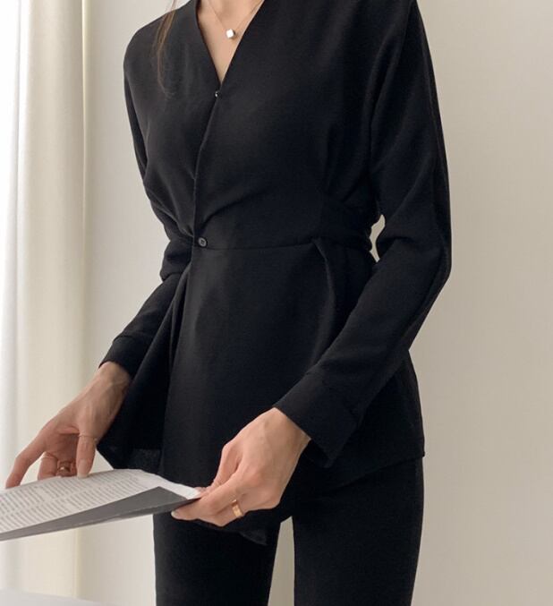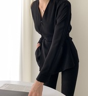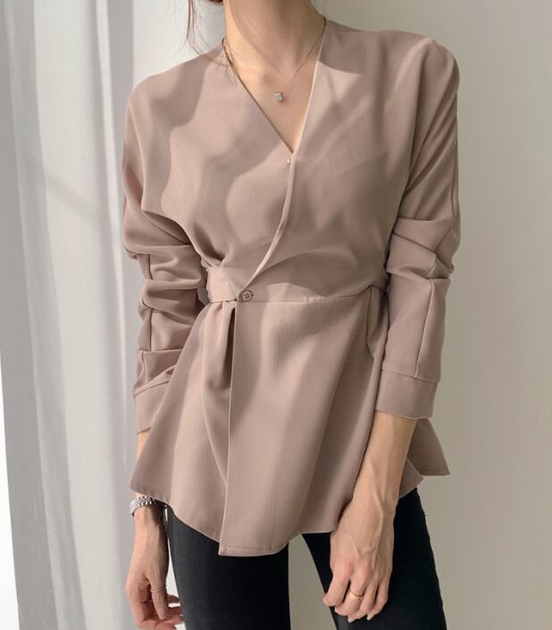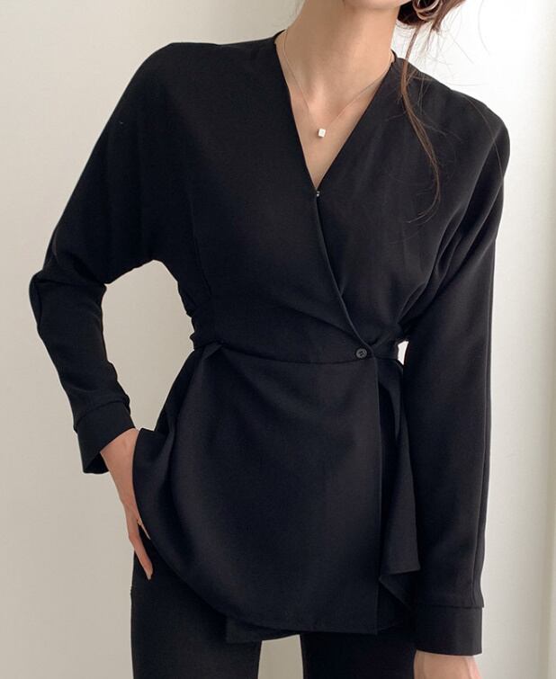 トップス ブラウス ラップ風 長袖 ラウンドネック オーバーサイズ 長袖 フェミニン シンプル 人気 おすすめ おしゃれ お洒落 激安 安い 送料無料 プチプラ スタンドカラー キレイめ 可愛い かわいい オリジナル カジュアル 春 スプリング オータム 秋 レディース 女性用 オフィスカジュアル シンプル シック 飽きのこない 美シルエット 通年 20代 30代 大きめ ビッグサイズ 春カラー デート 体型カバー 着痩せ オシャレ女子 S M L ベージュ ブラック 黒