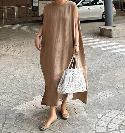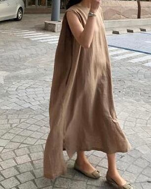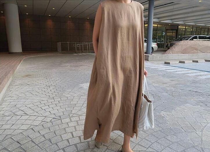 ワンピース ワントーン 無地 ノースリーブ 袖なし ゆったり ビッグシルエット オーバーサイズ 体型カバー お腹周りカバー サイドスリット ベージュ クリーム ブラウン ブラック 黒 おしゃれ オシャレ お洒落 送料込み 送料無料 エレガント シンプル 大人女子 レディース カジュアル ナチュラル 森ガール 通勤 ママコーデ ランチ 普段使い デート 散歩 旅行 観光 レジャー ピクニック 夏 サマー 海 ビーチ リゾート プール 20代 30代 40代 アラサー アラフォー アラフィフ