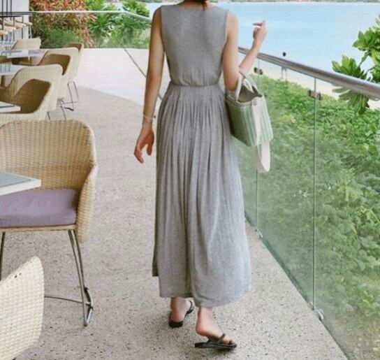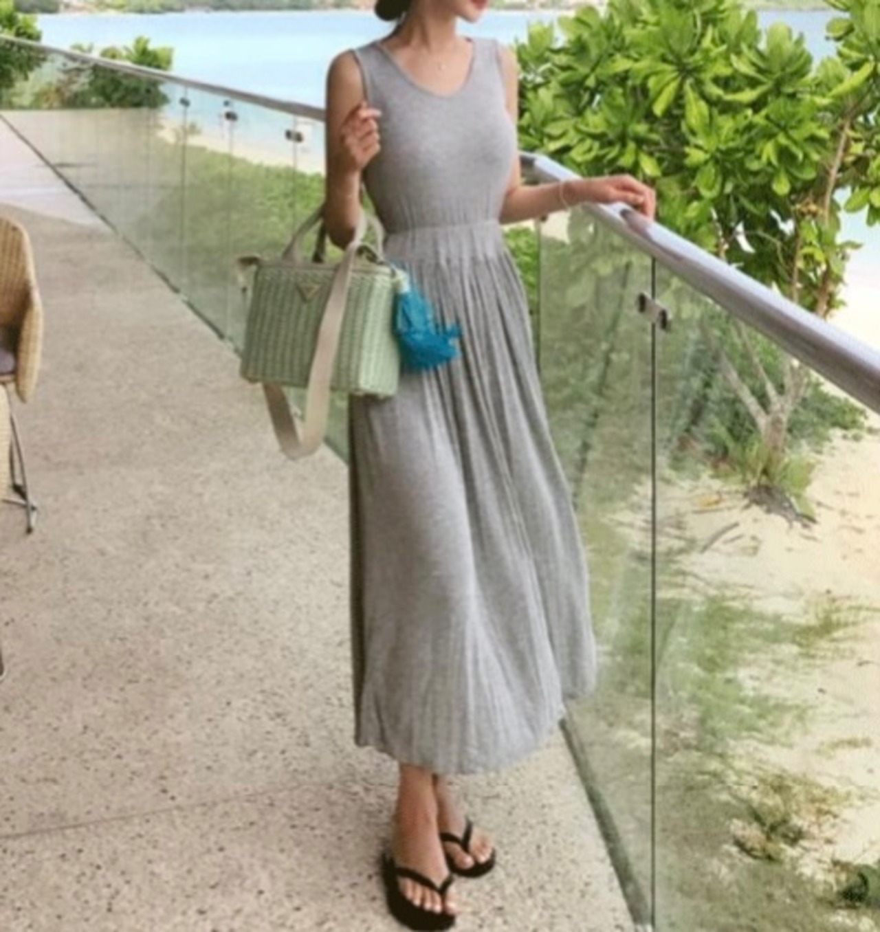 ワンピース ハイウエスト ウエスト切り替え プリーツ スリム ふんわり スカート ハイウエスト 脚長効果 スタイルアップ 無地 ノースリーブ タンクトップ 袖なし シンプル カジュアル スポーティー クール オシャレ おしゃれ お洒落 大人女子 20代 30代 アラサー アラフォー グレー ダークグレー レッド ブラック ネイビー 黒 紺 ワントーン ワンカラー 夏 サマー 海 ビーチ リゾートプール ランチ デート 普段使い 通勤 ママコーデ お出かけ ショッピング 散歩 観光 旅行 レジャー