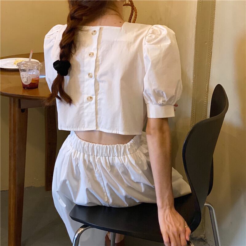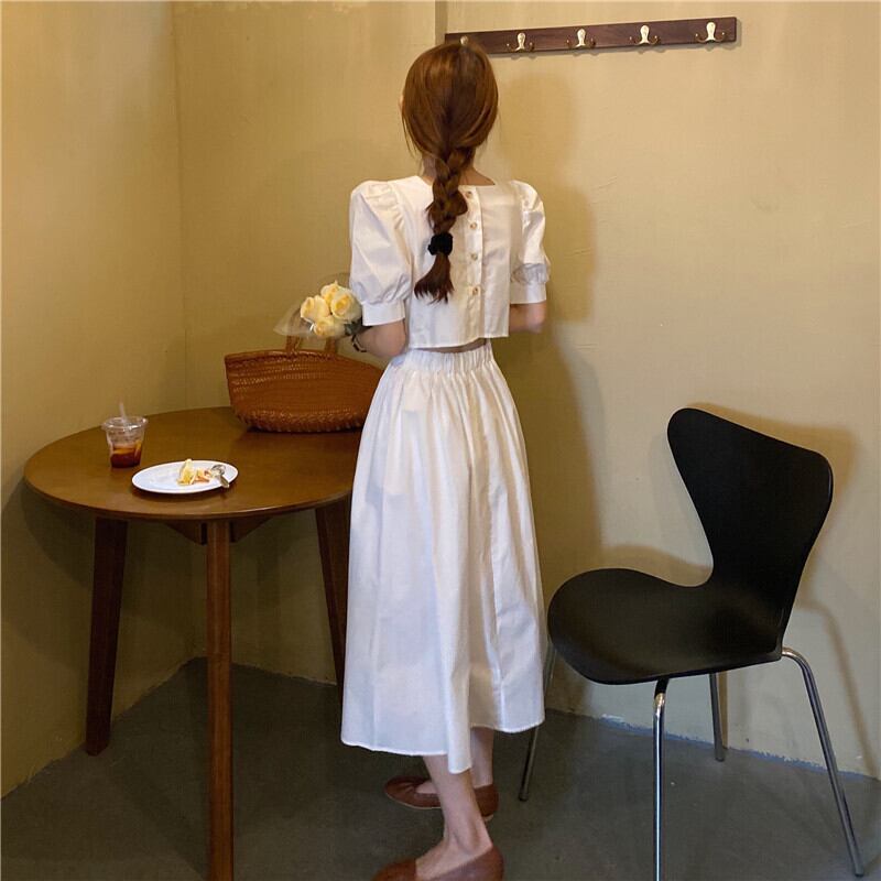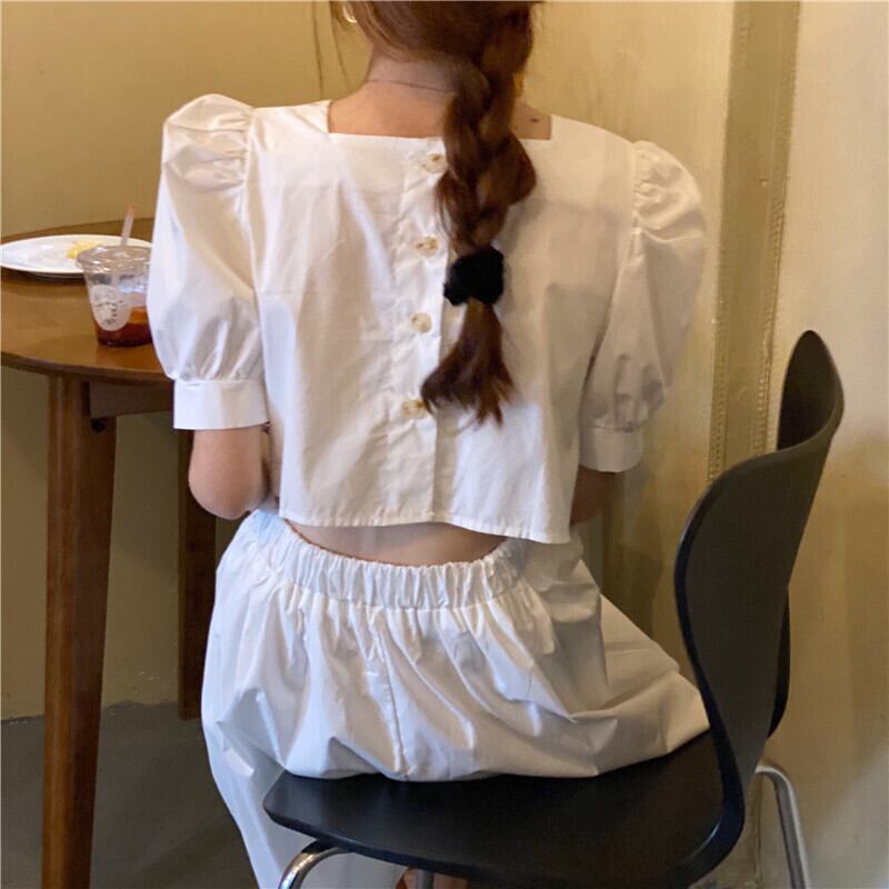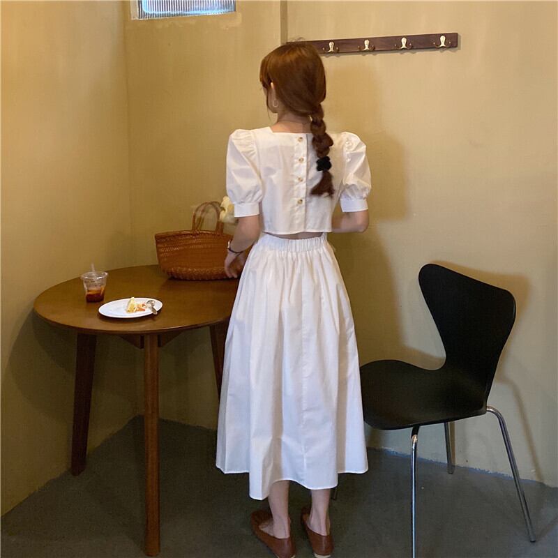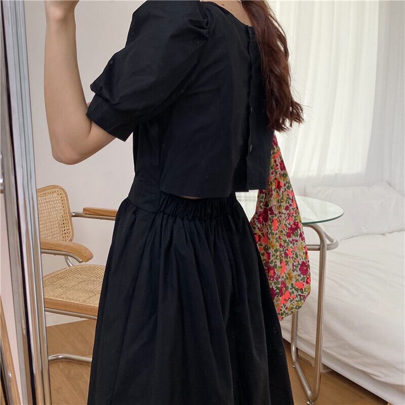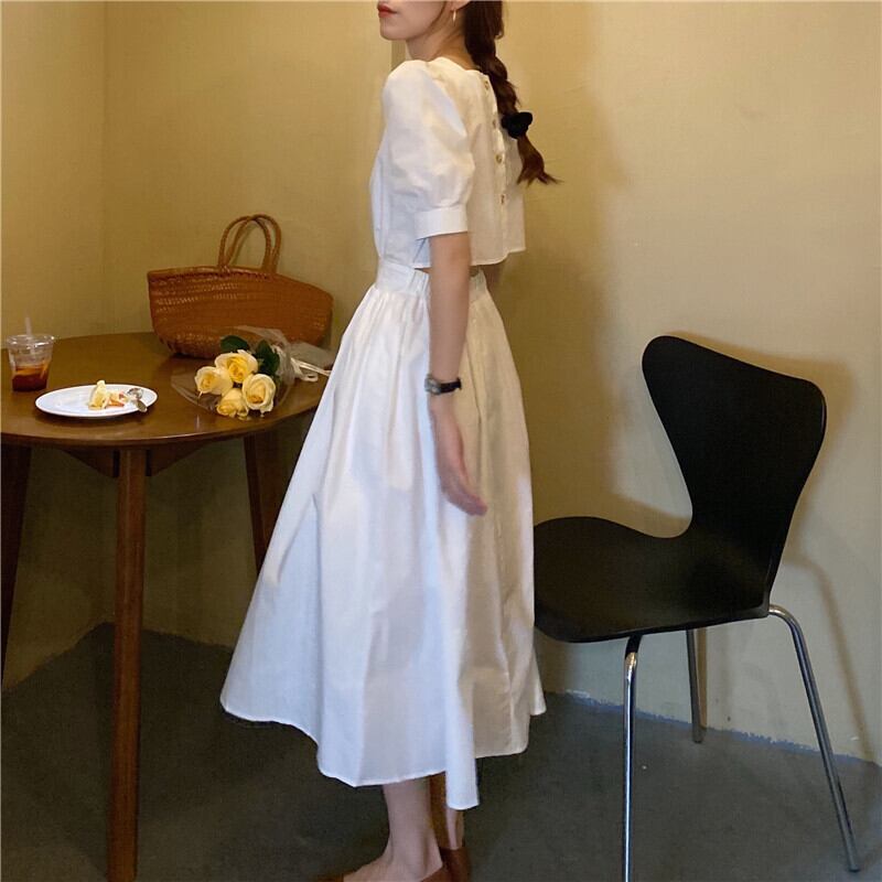 後ろ開き ワンピース パフスリーブ 半袖 ミモレ丈 ラウンドネック ロング丈 Aライン 無地 フレア モノトーン ハイウエスト バックボタン かわいい 大人可愛い きれいめ シンプル カジュアル 大人 上品 おしゃれ お洒落 かっこいい 大人可愛い 大人女子 こなれ感 ラフ ラブリー キュート ガーリー ルーズ モード系 10代 20代 30代 ゆったり レディース 着回し 普段使い 重ね着 韓国系 オルチャン ファッション コーデ 体系カバー 流行 インスタ映え ホワイト 白 ブラック 黒