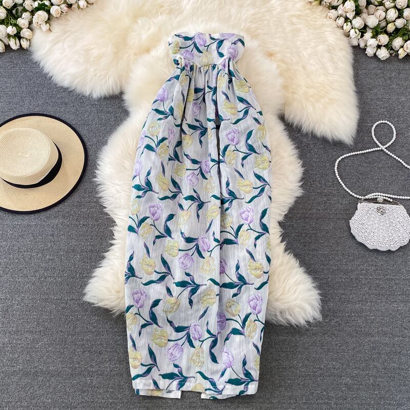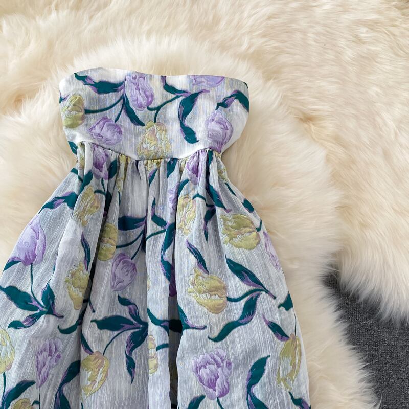 可愛いチューリップ柄のチューブトップワンピース。