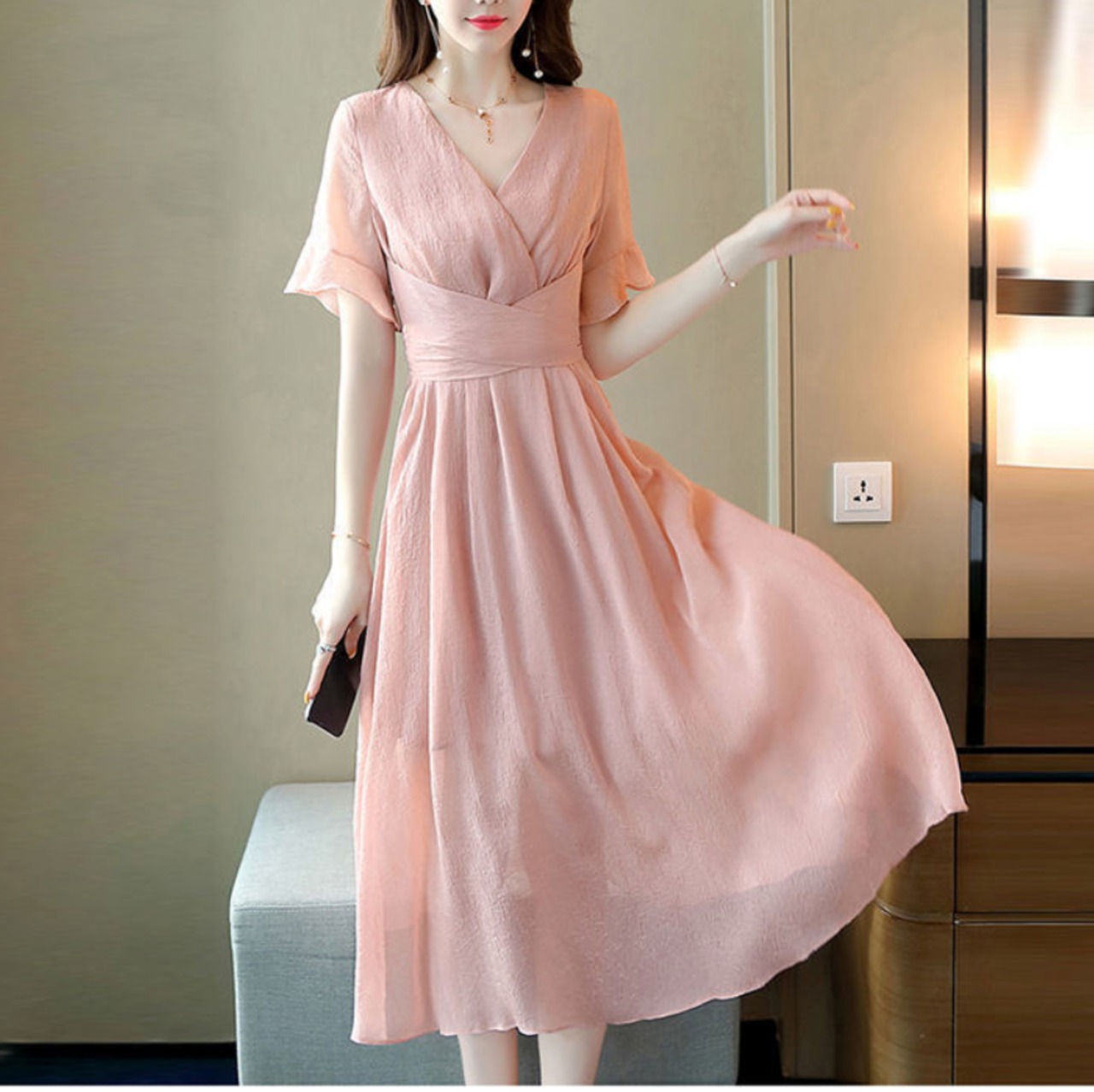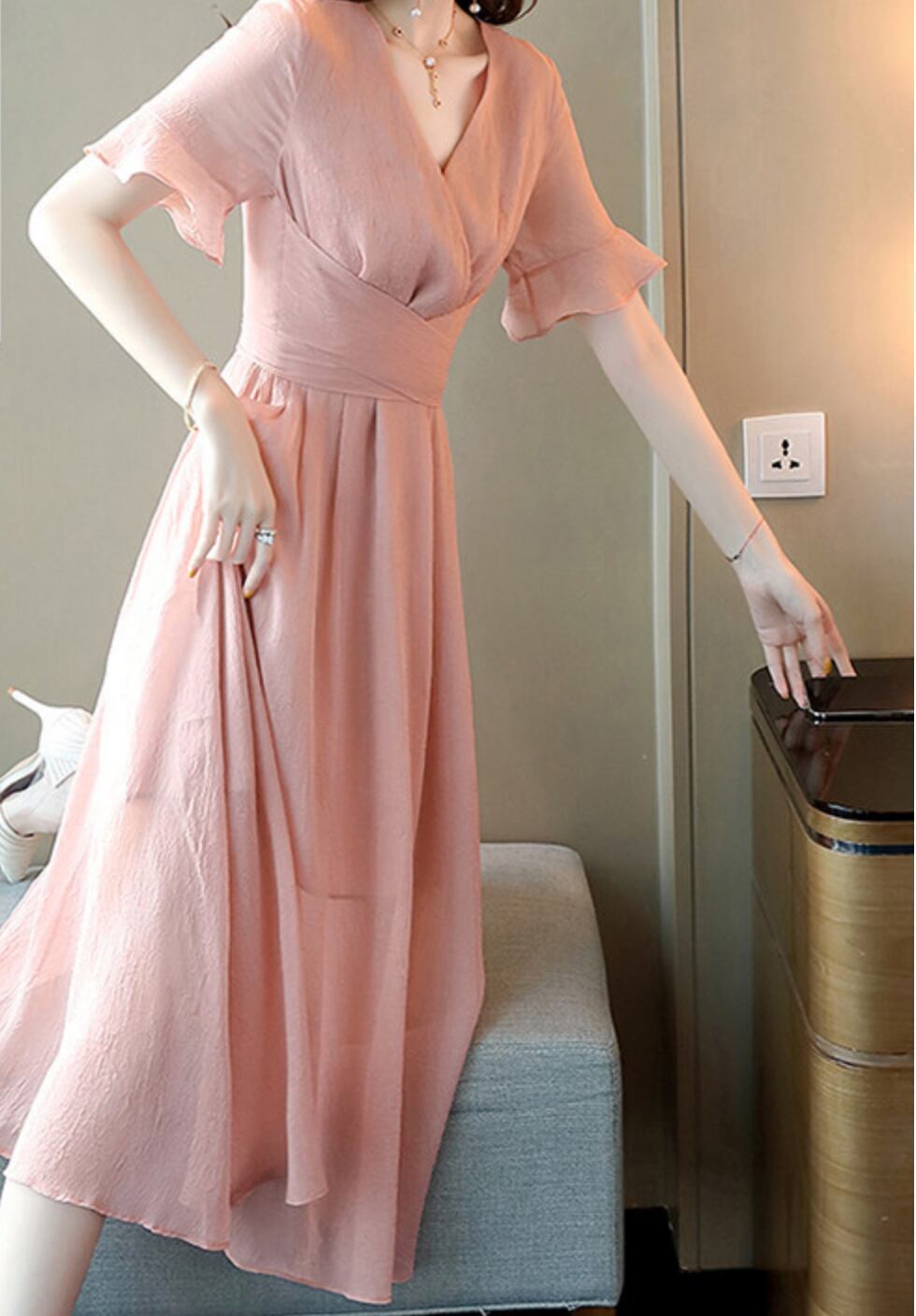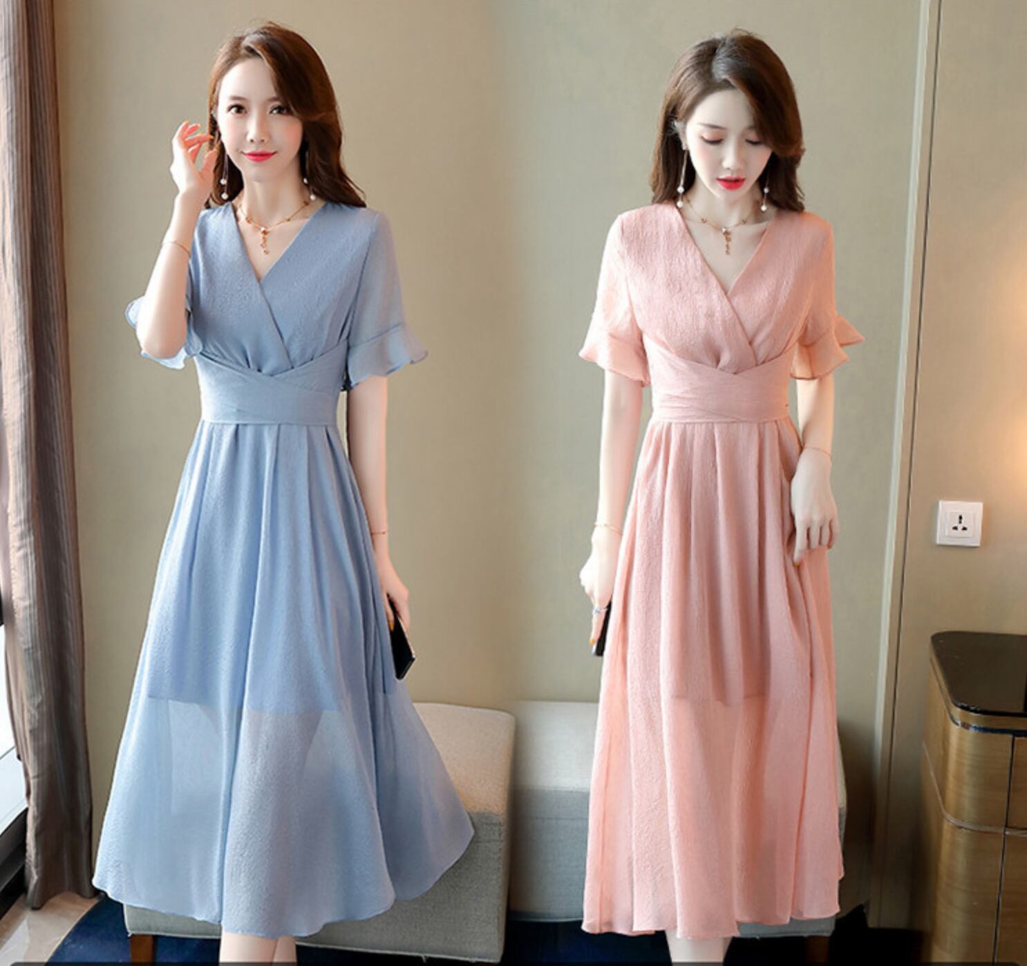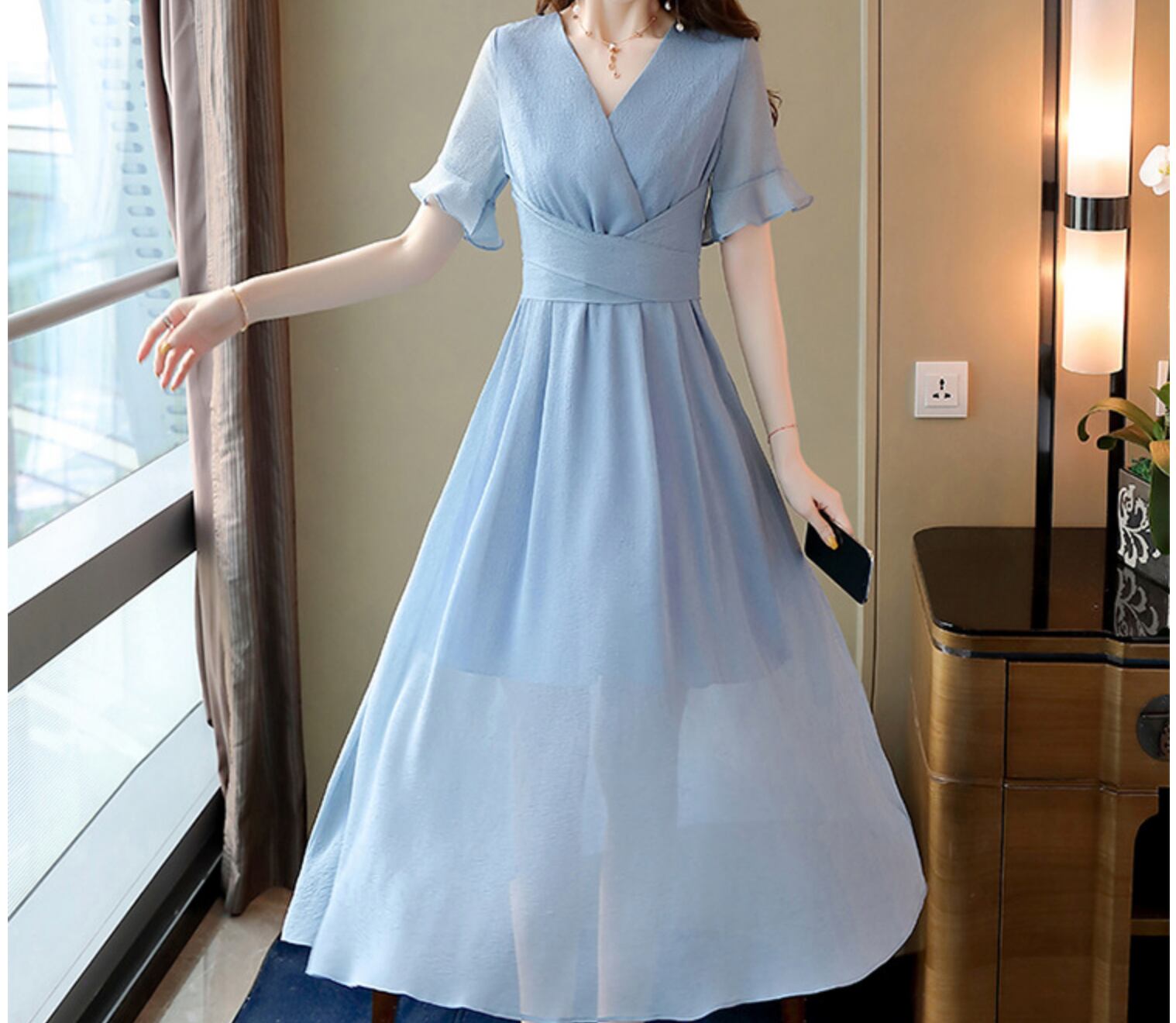 ワンピース 上着 人気 おすすめ おしゃれ お洒落 激安 安い 送料無料 プチプラ 半袖 Vネック 無地 リボン ポリエステル 可愛い かわいい 韓国 きれいめ 大人 上品 フォーマル 春 スプリング サマー 夏 レディース 女性用 20代 30代 S M L XL 2XL 3XL 4XL 黒 ブラック 青 ブルー 桃色 ピンク パステルカラー 大人カラー 春カラー デート フェミニン フレア シック フリル