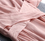 フェミニンなパステルカラーとウエストのリボンがポイントのデートにもパーティーにもおすすめな一枚。