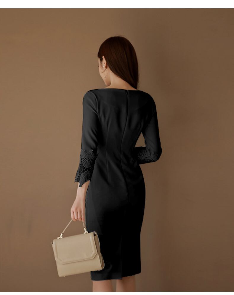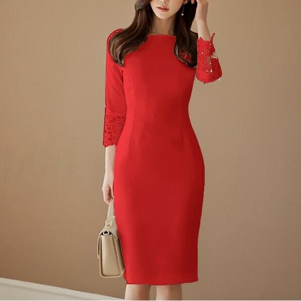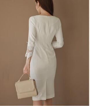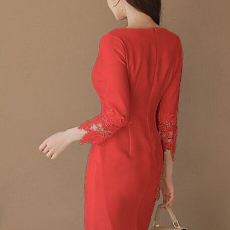 ミディ丈 タイト ワンピース 7分袖 セクシー フォーマル レース タイト エレガント ひざ丈 クルーネック かわいい 大人可愛い きれいめ シンプル カジュアル 大人 上品 おしゃれ お洒落 かっこいい 大人可愛い 大人女子 こなれ感 ラフ ラブリー キュート ガーリー ルーズ モード系 二次会 お呼ばれ パーティー 透け感 20代 30代 40代 レディース 着回し 普段使い 重ね着 韓国系 オルチャン ファッション コーデ 体系カバー 流行 インスタ映え ホワイト 白 ブラック 黒 レッド 赤