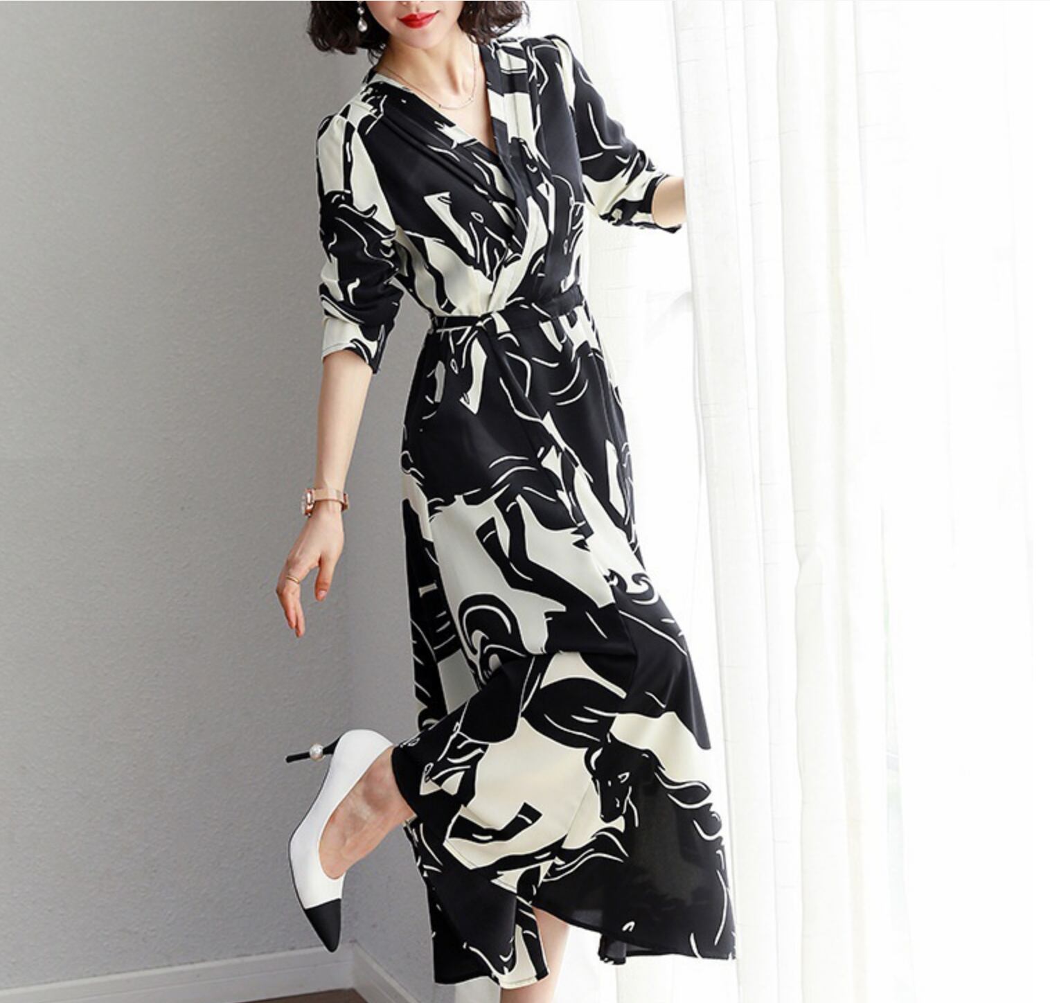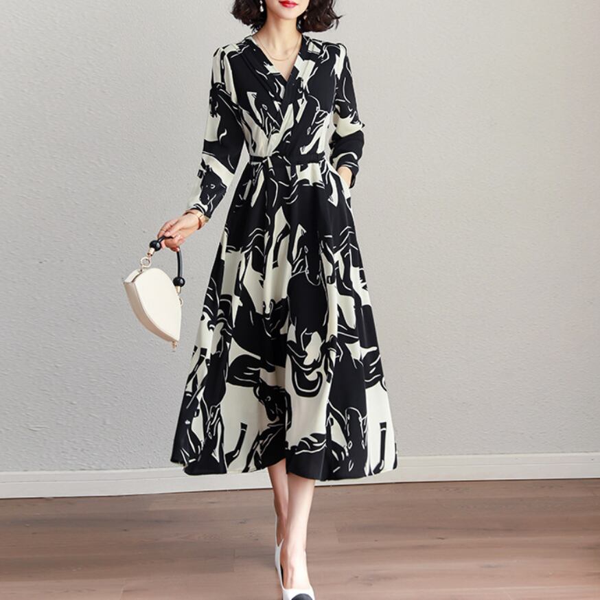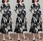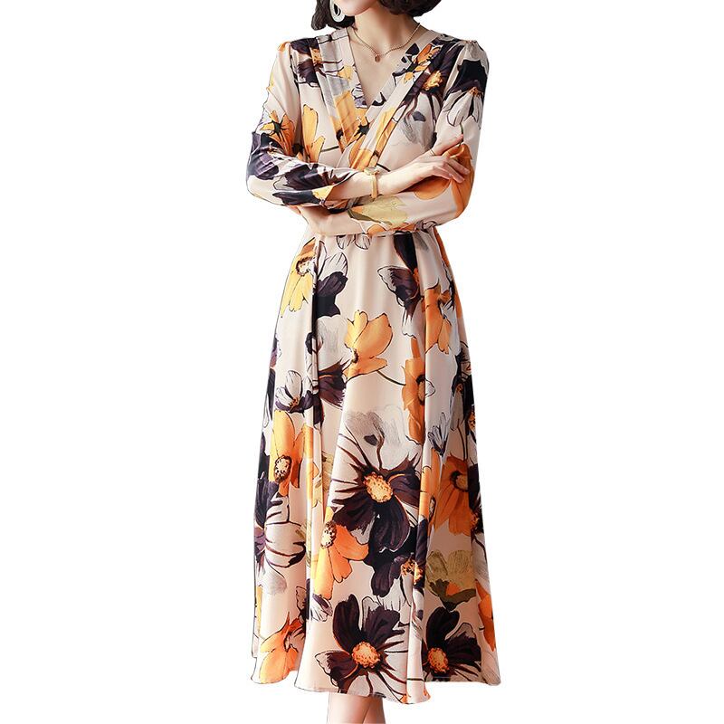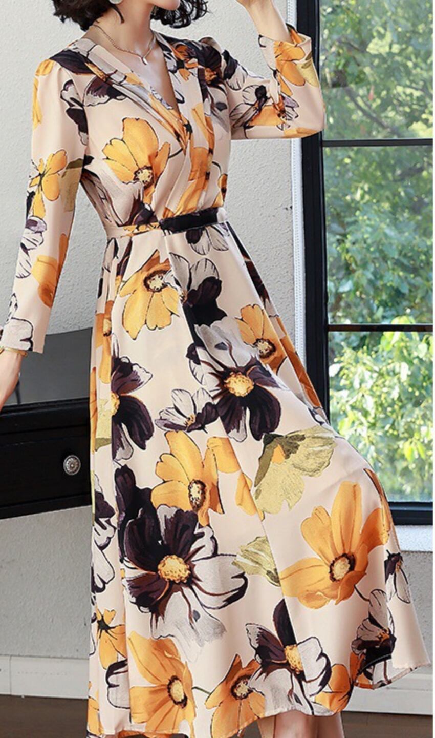 ワンピース 上着 人気 おすすめ おしゃれ お洒落 激安 安い 送料無料 プチプラ 長袖 ロング Vネック Aライン ロングスカート ウエスト 柄 花柄 プリント ふんわり 可愛い かわいい 韓国 きれいめ 大人 上品 フォーマル 春 スプリング 秋 オータム レディース 女性用 20代 30代 40代 50代 M L XL 2XL 3XL 白 ホワイト 黒 ブラック 黄色 イエロー デート フェミニン オフイス