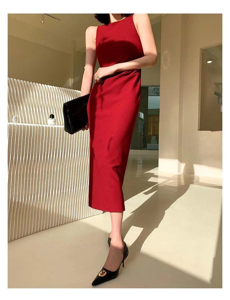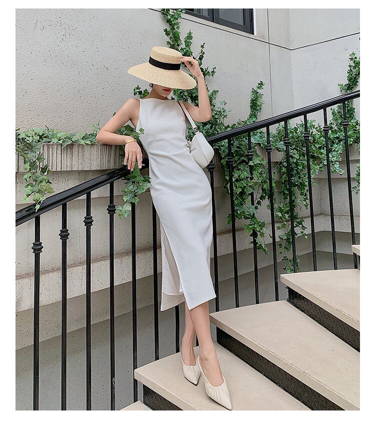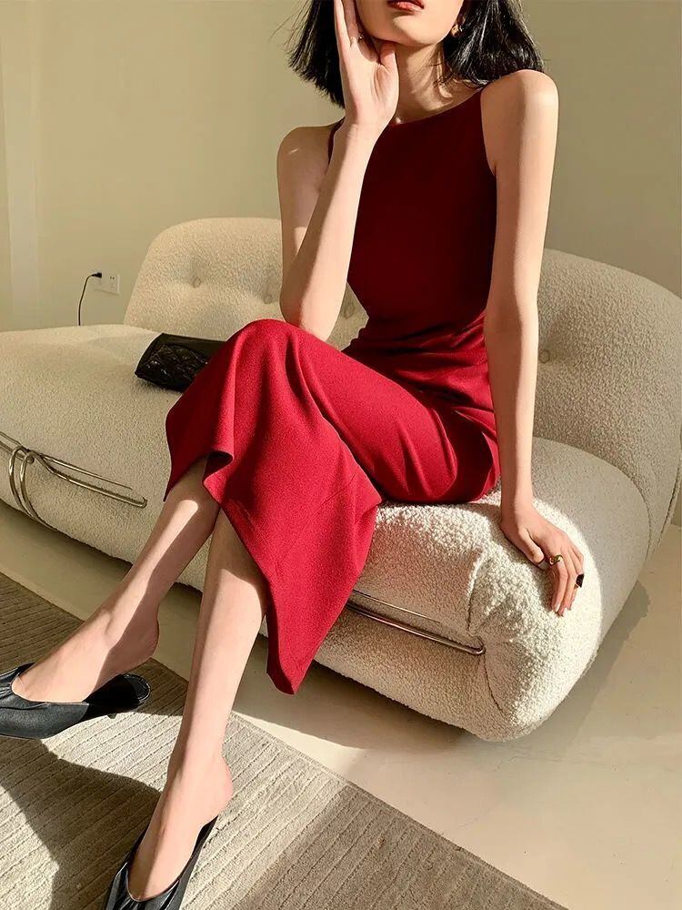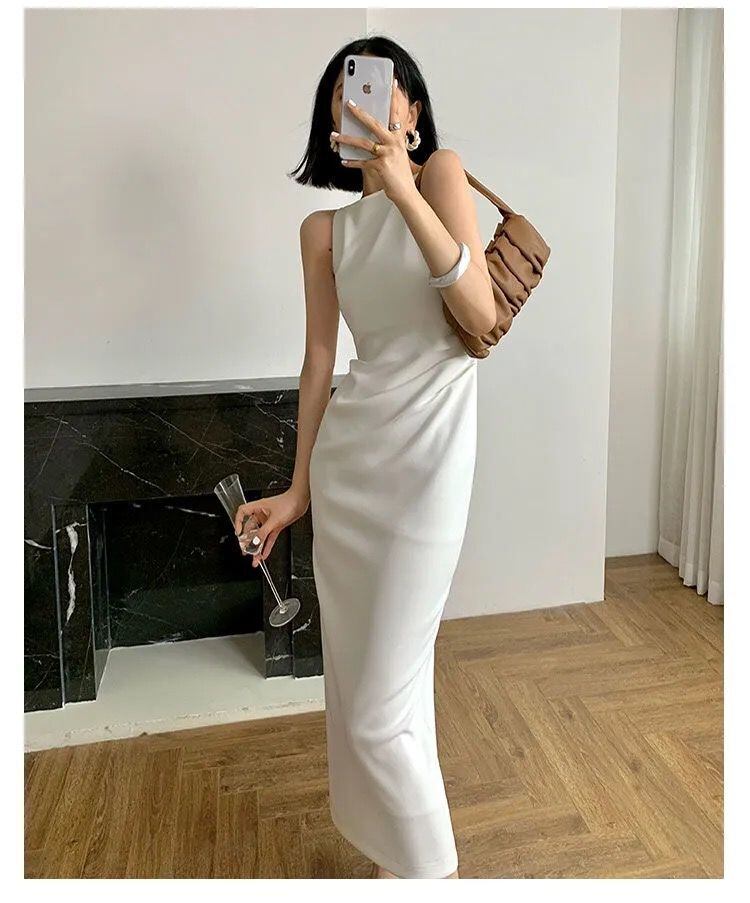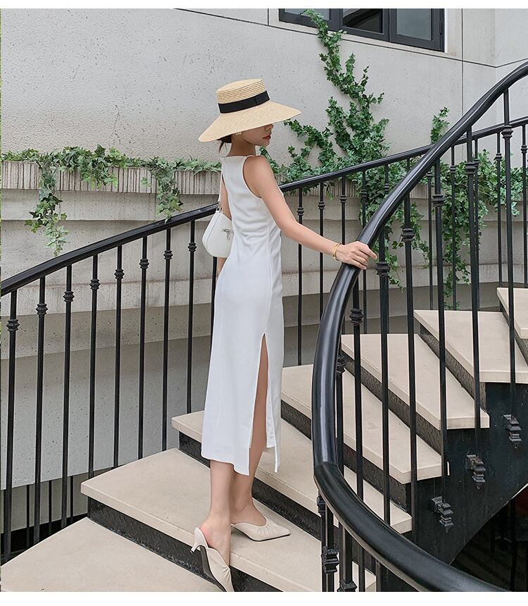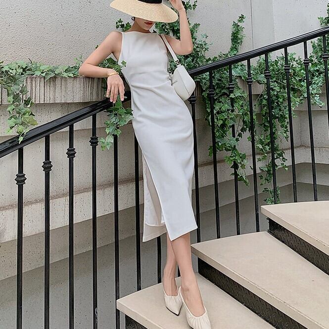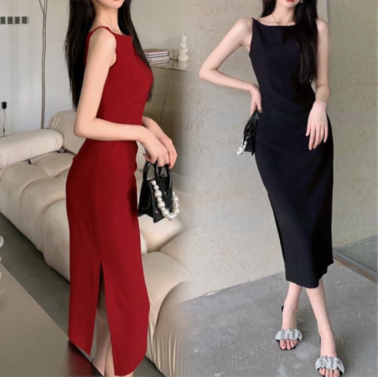 ストラップ ワンピース ドレス ノースリーブ タイト サイドスリット ハイウエスト 無地 ミモレ丈 上品 高見え ロング丈 かわいい 大人可愛い きれいめ シンプル カジュアル 大人 上品 おしゃれ お洒落 かっこいい 大人可愛い 大人女子 こなれ感 ラフ ラブリー キュート ガーリー ルーズ モード系 10代 20代 30代 二次会 パーティー レディース 着回し 普段使い 重ね着 韓国系 オルチャン ファッション コーデ 体系カバー 流行 インスタ映え ホワイト 白 レッド 赤 ブラック 黒