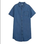 さわやかなブルーデニムの半袖シャツワンピースです。
