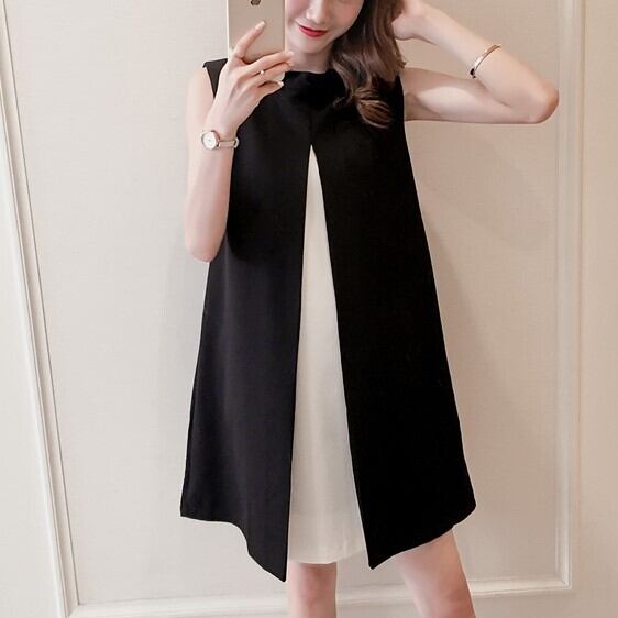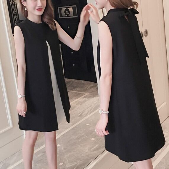 重ね着風 ミニ ワンピース チュニック丈 Aライン ノースリーブ フレア バックリボン クルーネック エレガント 高見え マタニティ かわいい 大人可愛い きれいめ シンプル カジュアル 大人 上品 おしゃれ お洒落 かっこいい 大人可愛い 大人女子 こなれ感 ラフ ラブリー キュート ガーリー ルーズ モード系 10代 20代 二次会 お呼ばれ パーティー レディース 着回し 普段使い 重ね着 韓国系 オルチャン ファッション コーデ 体系カバー 流行 インスタ映え ブラック 黒