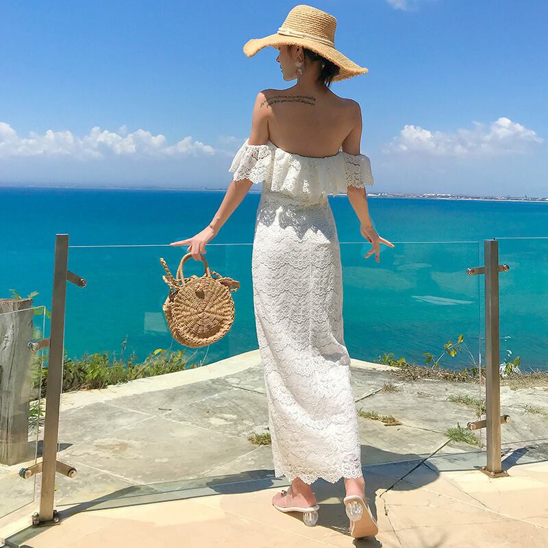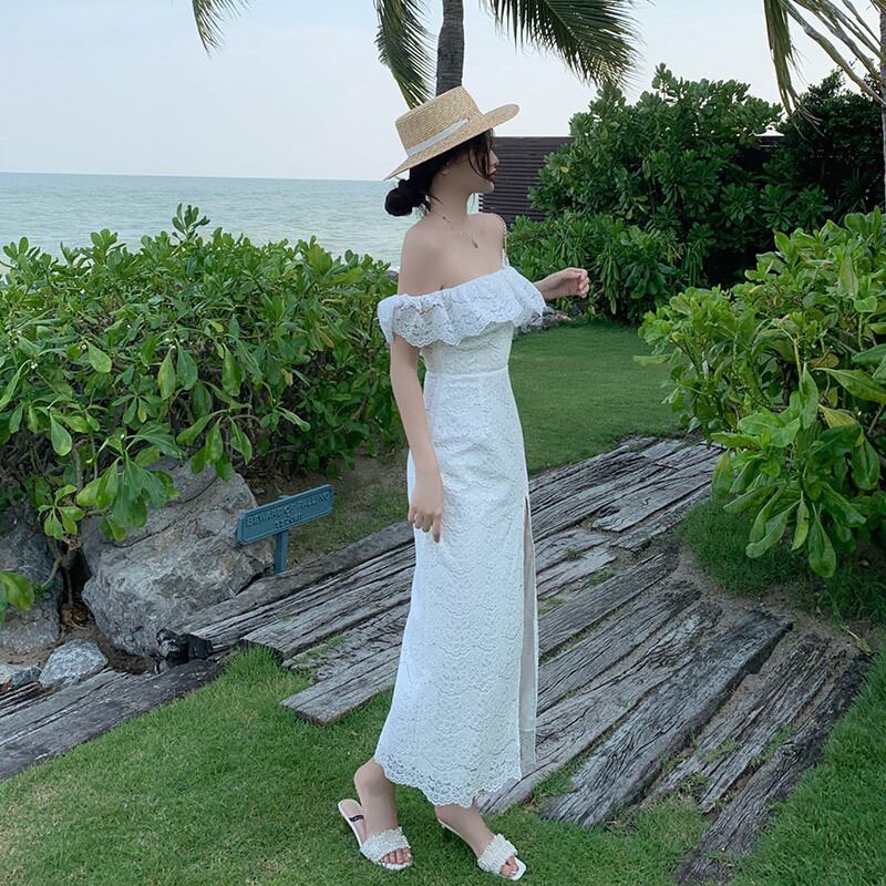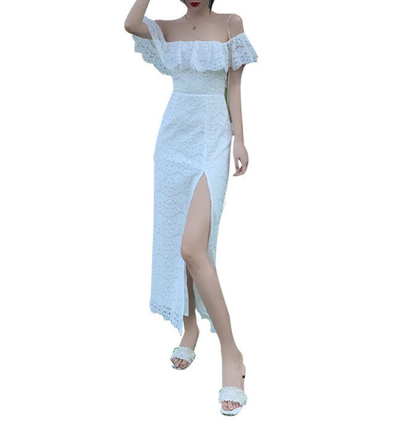 ワンピース 上着 人気 おすすめ おしゃれ お洒落 激安 安い 送料無料 プチプラ オフショルダー 脚長効果 肩出し ウエスト 背中開き スリット 無地 ロングスカート フリル レース ポリエステル 可愛い かわいい 韓国 きれいめ 大人 上品 スリム 春 スプリング サマー 夏 レディース 女性用 20代 30代 S M L 白 ホワイト 春カラー デート フェミニン セクシー ビーチ ホリデー 旅行 シック