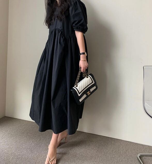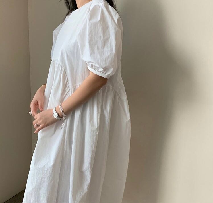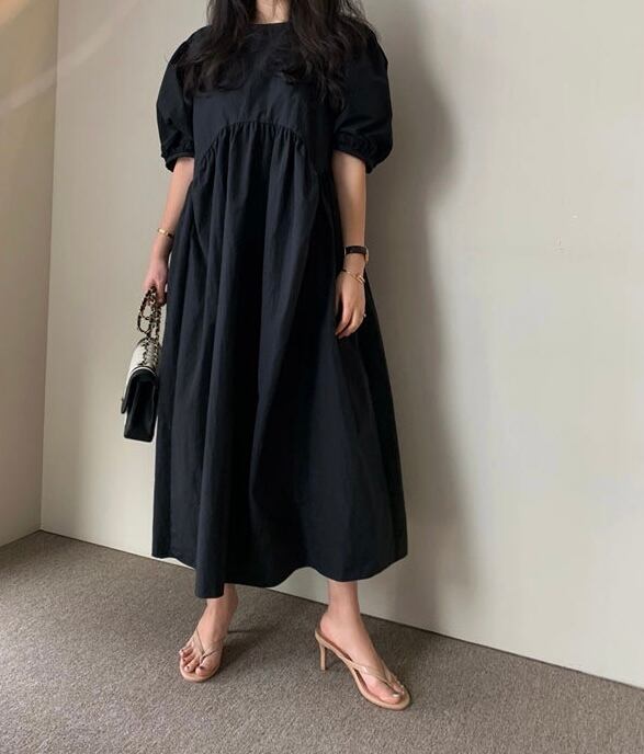 ワンピース ワントーン ワンカラー 半袖 パフスリーブ 袖あり 二の腕カバー ゆったり オーバーサイズ ビッグシルエット 体型カバー お腹周りカバー ウエストマーク ハイウエスト スタイルアップ 脚長効果 ブラック ホワイト グレー 黒 白 大きいサイズ S M L XL 高身長 大人女子 カジュアル ナチュラル 普段使い ママコーデ レトロ 無地 ランチ 通勤 散歩 お出かけ 買い物 ショッピング レジャー ピクニック 春 夏 秋 オータム スプリング サマー 海 ビーチ プール リゾート 送料無料