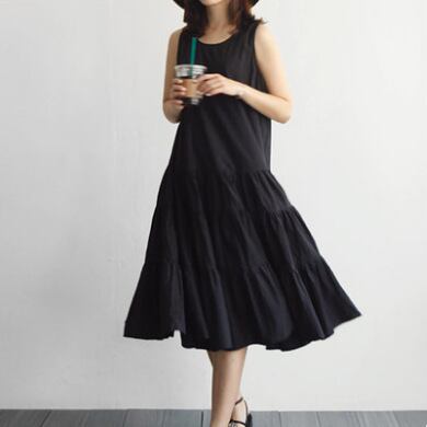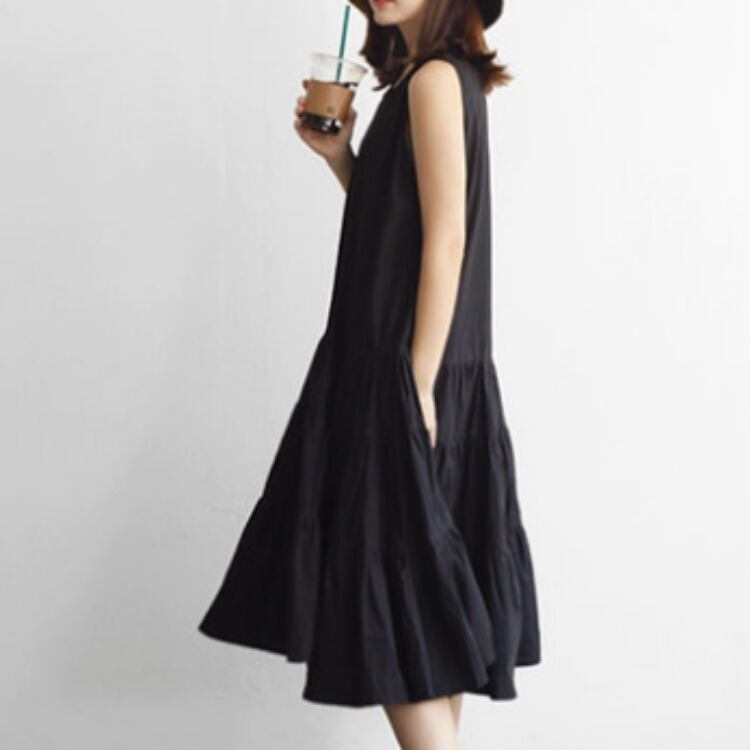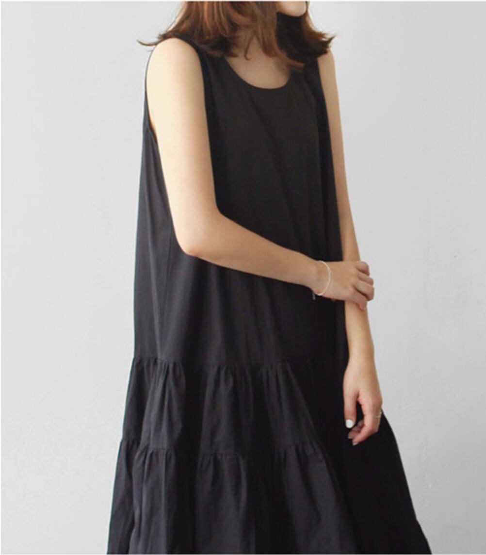 ワンピース 上着 人気 おすすめ おしゃれ お洒落 激安 安い 送料無料 プチプラ 肩出し ノースリーブ ラウンドネック 丸首 無地 フリル コットン 綿 着痩せ 体型カバー 可愛い かわいい 韓国 シンプル カジュアル 春 スプリング サマー 夏 アウトドア レディース 女性用 20代 30代 マタニティ 妊婦 S M L XL 大きめ ゆったり ゆる 黒 ブラック 大人カラー モノトーン デート お出かけ
