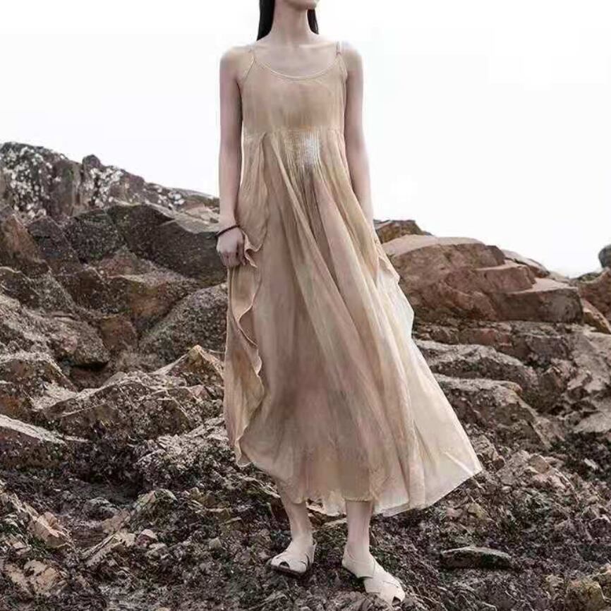 タイダイ柄のゆったりシルエットのキャミワンピース。