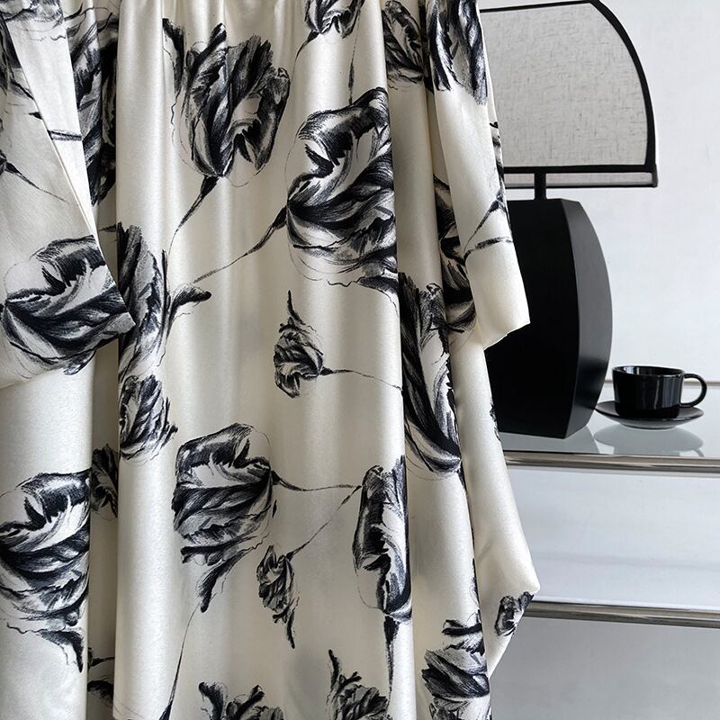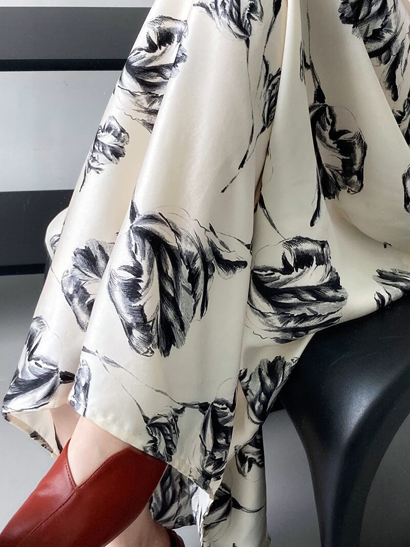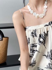 繊細なタッチの花柄が大人っぽいモノトーンのショルダーストラップワンピースです。