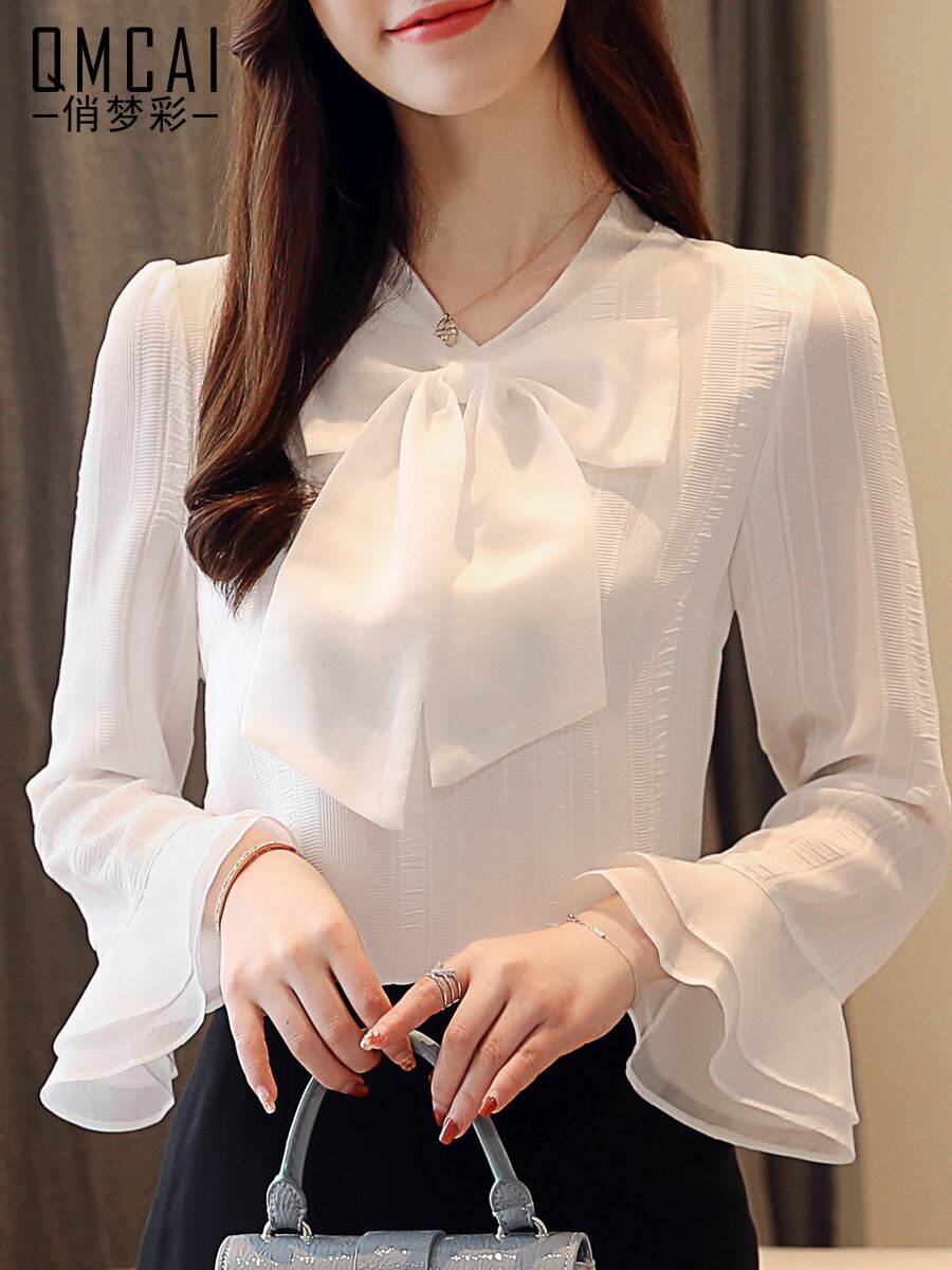 大人女性の上品な雰囲気を引き立ててくれるボウタイリボンブラウス。
