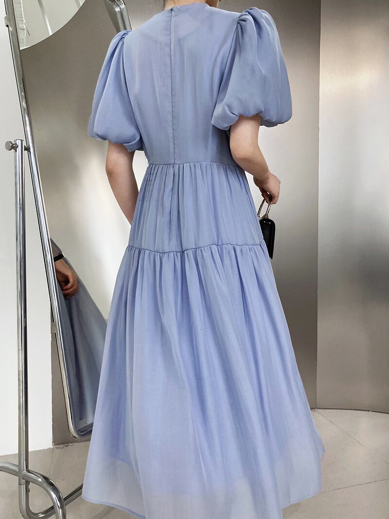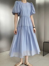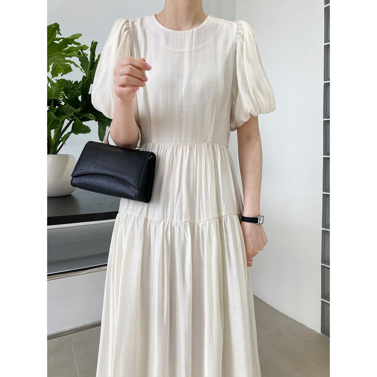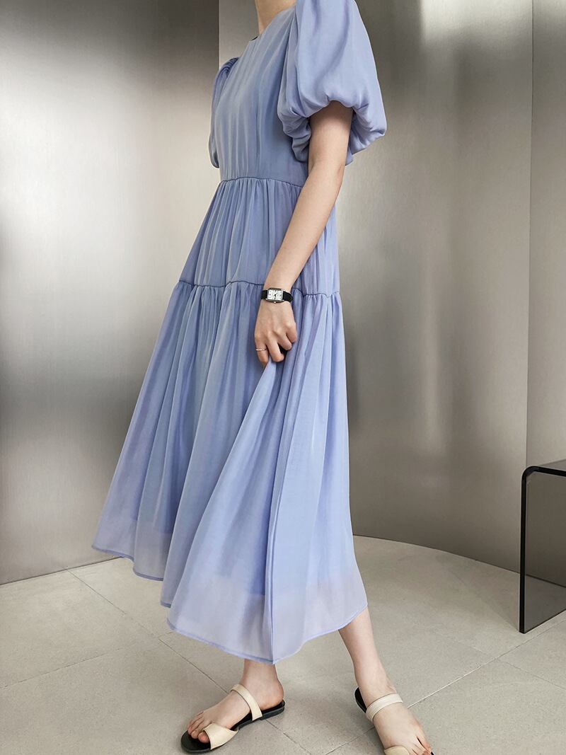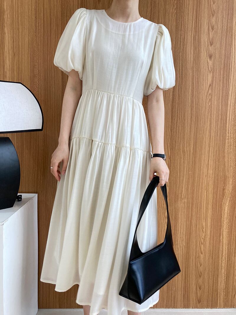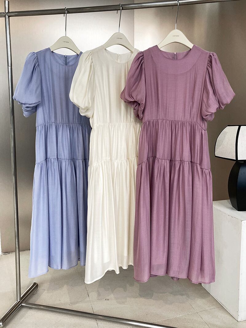 ワンピース 上着 人気 おすすめ おしゃれ お洒落 激安 安い 送料無料 プチプラ 半袖 ラウンドネック パフスリーブ ボリュームスリーブ 丸首 無地 ポリエステル テンセル 可愛い かわいい 韓国 シンプル きれいめ 大人 上品 春 スプリング サマー 夏 結婚式 レディース 女性用 20代 30代 M L 白 ホワイト 青 ブルー 紫 パープル パステルカラー 春カラー デート フェミニン お出かけ オフィス パーティー