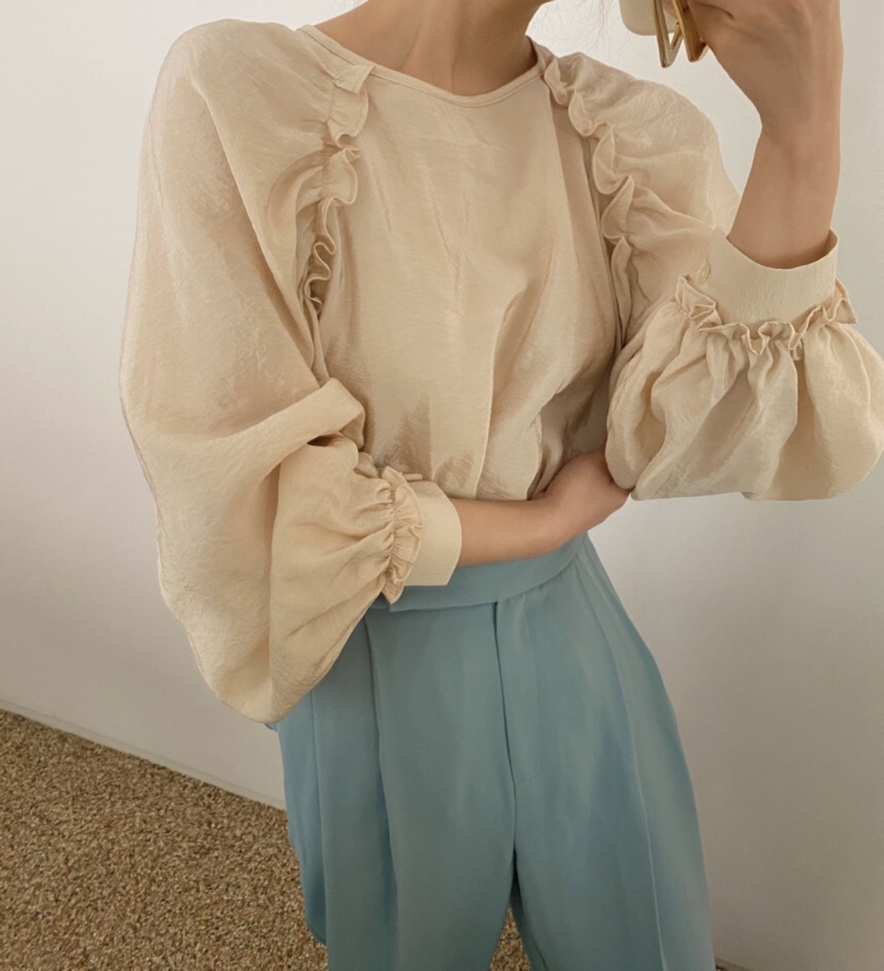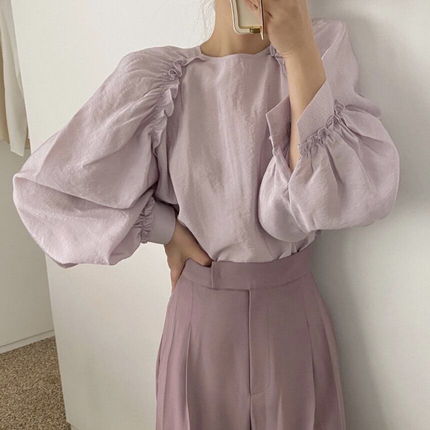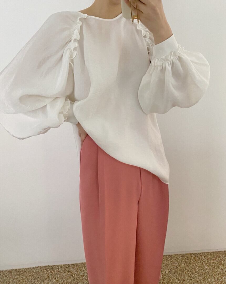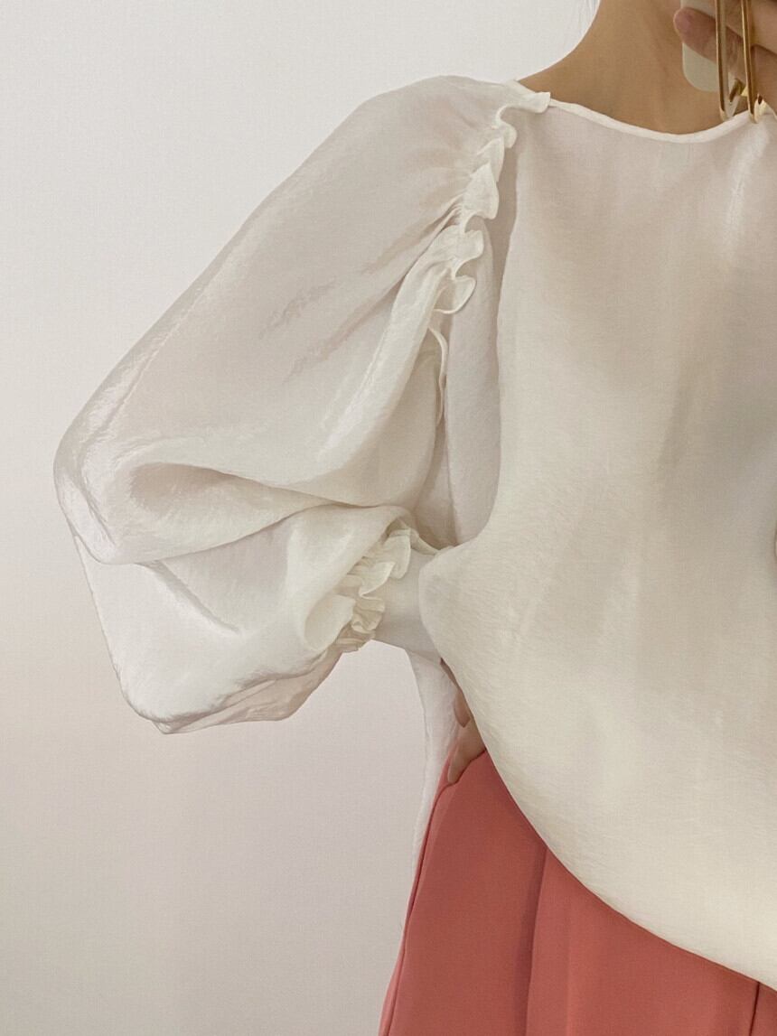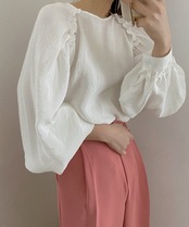 ふんわり仕立てのボリューム感がフェミニンなパフブラウスです。