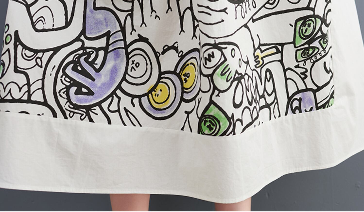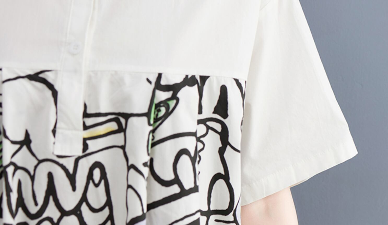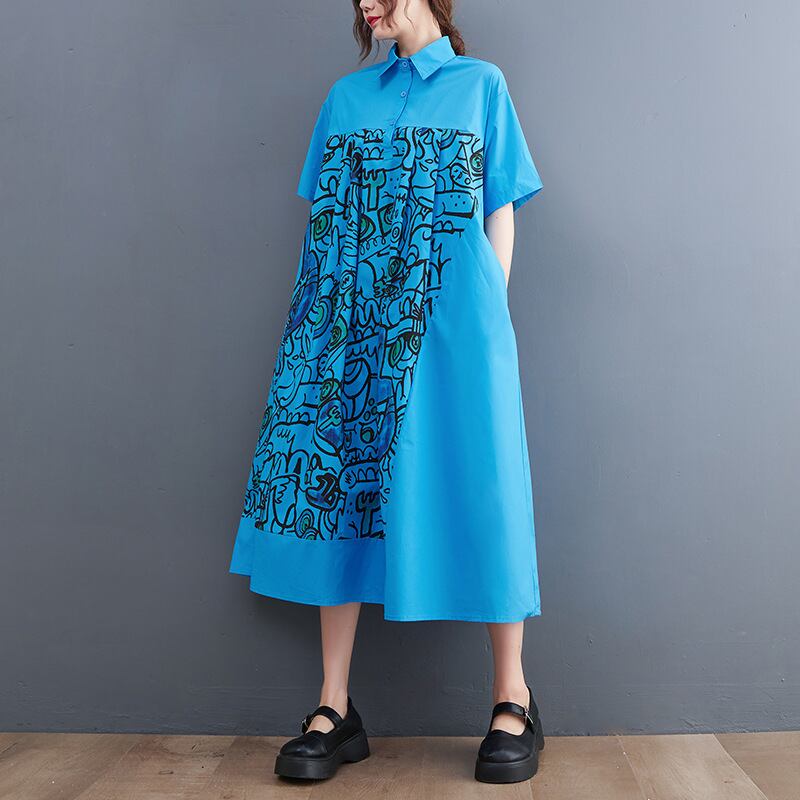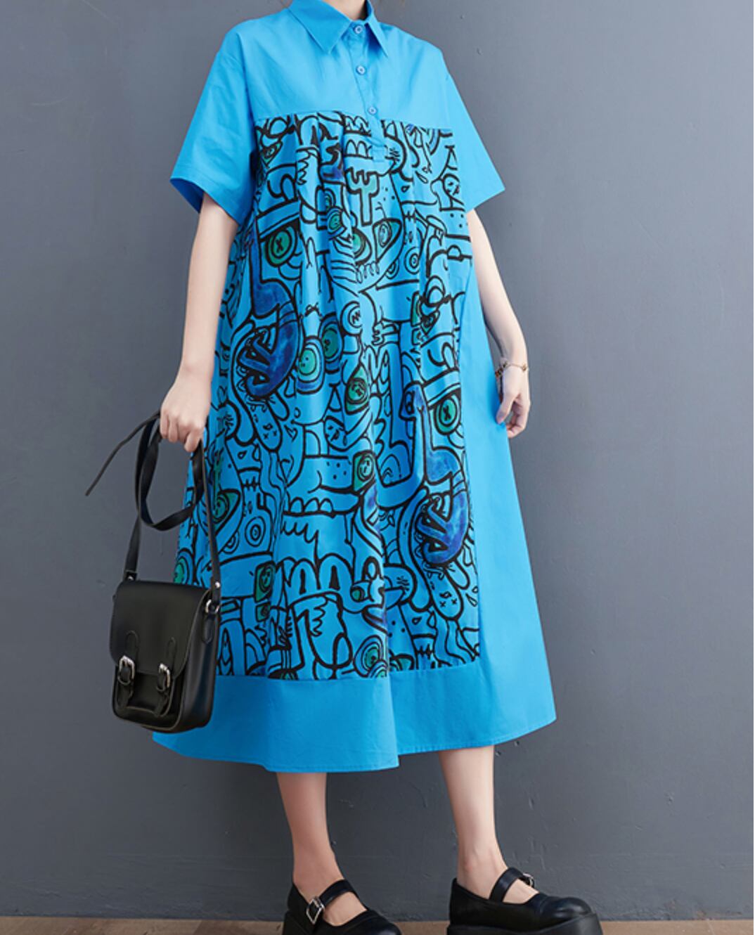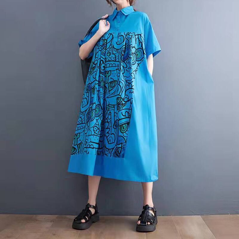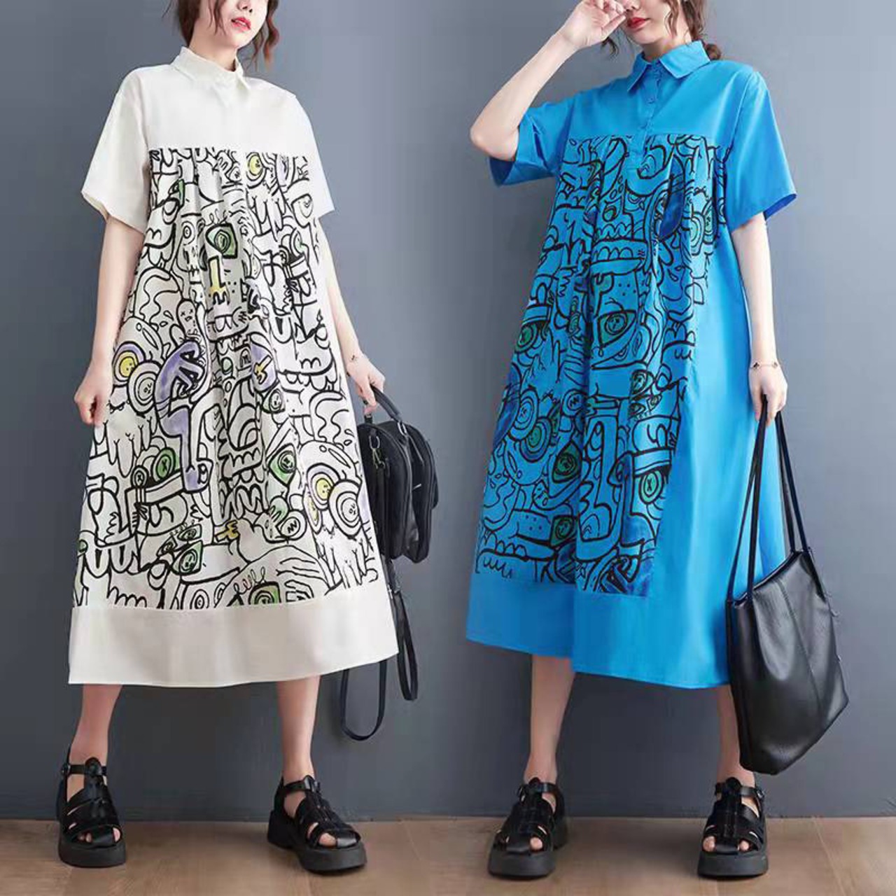 ワンピース 上着 人気 おすすめ おしゃれ お洒落 激安 安い 送料無料 プチプラ シャツ 半袖 柄 プリント ロングスカート コットン 綿 オリジナル オーバーサイズ 着痩せ 体型カバー 可愛い かわいい 韓国 カジュアル 春 スプリング サマー 夏 ストリート レディース 女性用 20代 30代 マタニティ 妊婦 フリーサイズ 大きめ ゆったり 白 ホワイト 青 ブルー 春カラー お出かけ