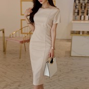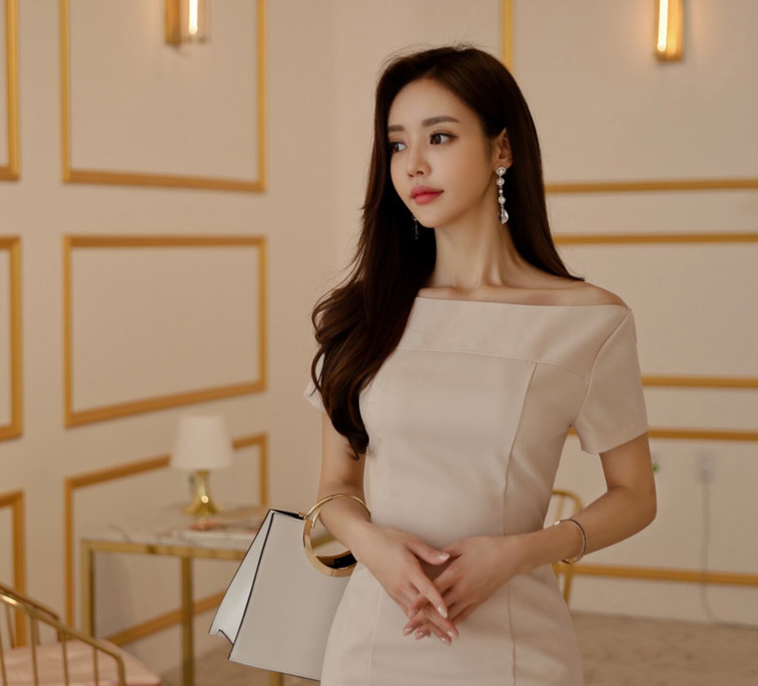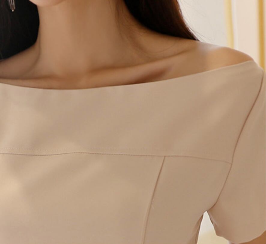 ワンピース 上着 人気 おすすめ おしゃれ お洒落 激安 安い 送料無料 プチプラ オフショルダー 肩出し タイト 半袖 無地 ポリエステル 韓国 シンプル きれいめ 大人 上品 フォーマル 春 スプリング サマー 夏 結婚式 レディース 女性用 20代 30代 S M L XL アプリコット ベージュ オフホワイト 大人カラー 春カラー デート フェミニン オフィス