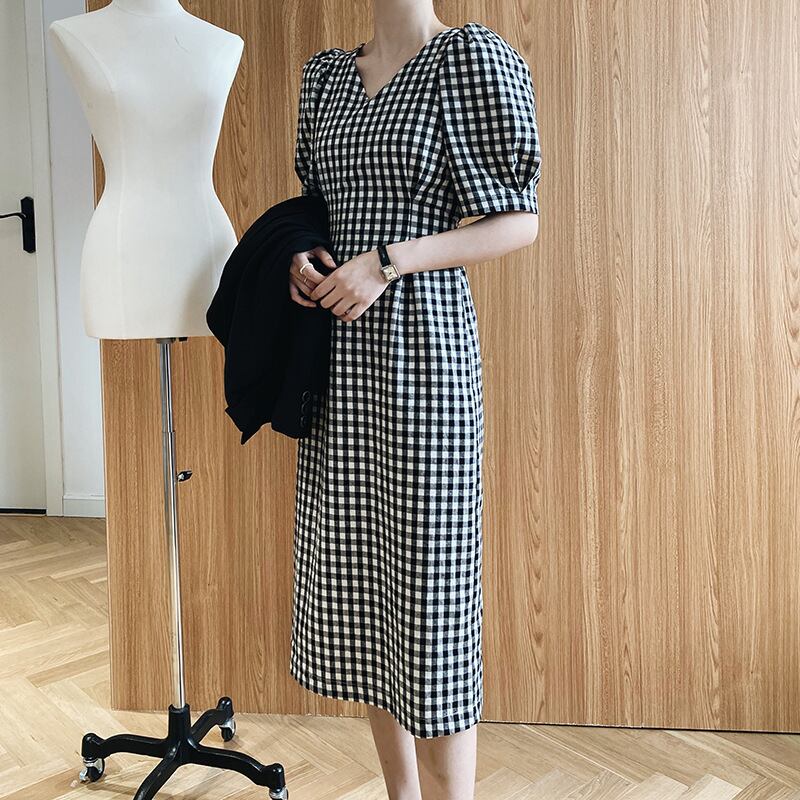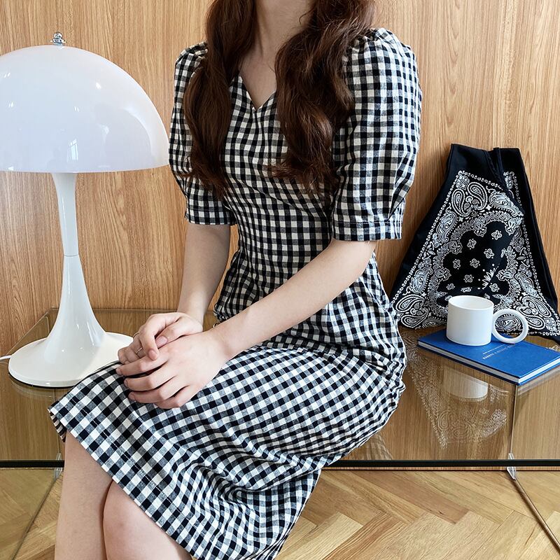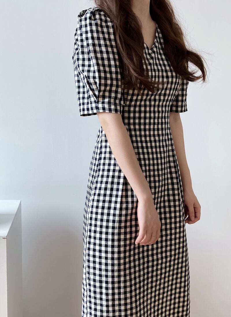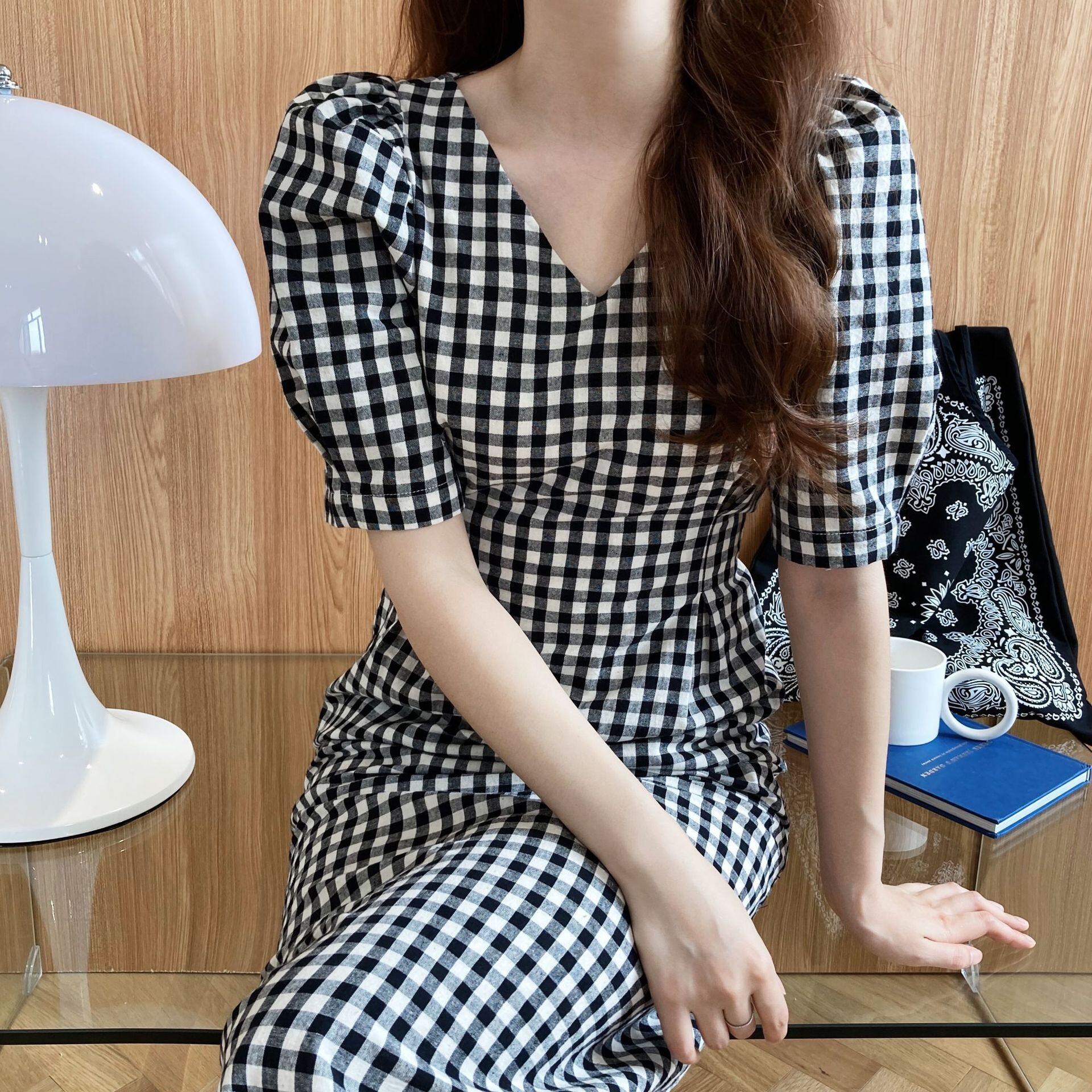 ワンピース 上着 人気 おすすめ おしゃれ お洒落 激安 安い 送料無料 プチプラ 半袖 Vネック 柄 膝丈 タイト パフスリーブ ボリュームスリーブ ギンガムチェック コットン 綿 ポリエステル プリント 可愛い かわいい 韓国 きれいめ フォーマル 春 スプリング サマー 夏 レディース 女性用 20代 30代 S M L 白 ホワイト 黒 ブラック 大人カラー バイカラー デート フェミニン オフィス