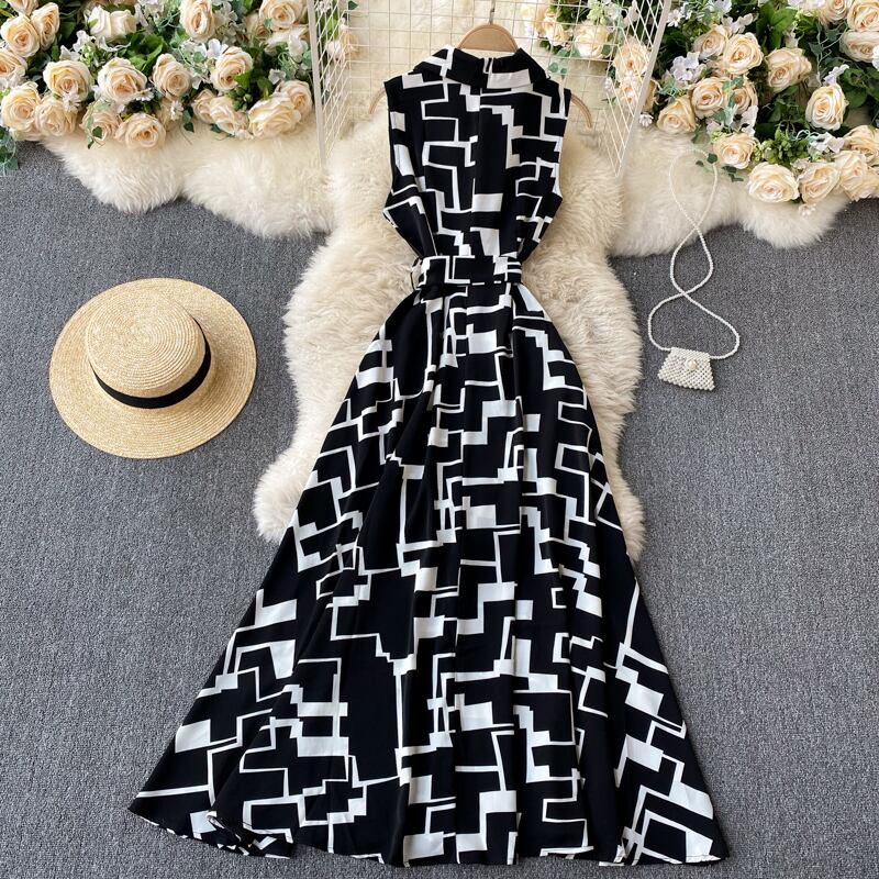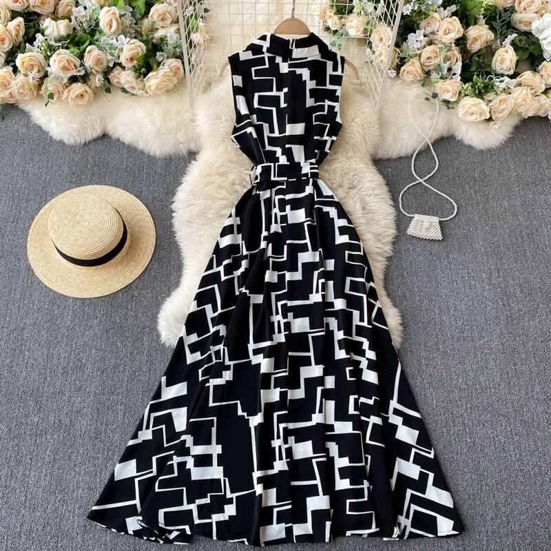 ワンピース 上着 人気 おすすめ おしゃれ お洒落 激安 安い 送料無料 プチプラ 肩出し ノースリーブ オープンカラー 開襟 リボン ウエスト マキシ Vネック 柄 プリント 韓国 きれいめ 大人 上品 フォーマル 春 スプリング サマー 夏 レディース 女性用 20代 30代 S M L XL 2XL 白 ホワイト 黒 ブラック 大人カラー バイカラー モノトーン フェミニン エレガント シック