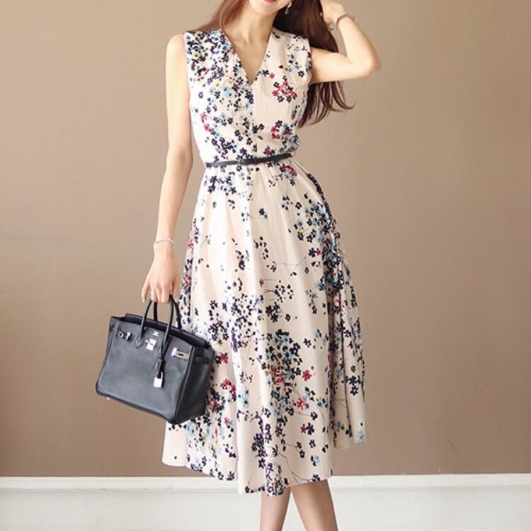 ワンピース 上着 人気 おすすめ おしゃれ お洒落 激安 安い 送料無料 プチプラ 肩出し ノースリーブ ベルト付き フローラル Vネック 柄 プリント 花柄 ポリエステル 韓国 きれいめ 大人 上品 フォーマル 春 スプリング サマー 夏 結婚式 レディース 女性用 20代 30代 S M L XL ベージュ オフホワイト 春カラー デート フェミニン パーティー