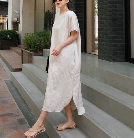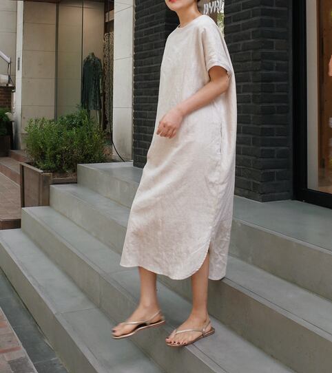 クルーネック 半袖 ワンピース ゆったり ロング丈 スリット ラウンドカット マキシ丈 無地 かわいい 大人可愛い きれいめ シンプル カジュアル 大人 上品 おしゃれ お洒落 かっこいい 大人可愛い 大人女子 こなれ感 ラフ ラブリー キュート ガーリー ルーズ モード系 マタニティ ストレート 20代 30代 40代 レディース 着回し 普段使い 重ね着 韓国系 オルチャン ファッション コーデ 体系カバー 激安 流行 インスタ映え ピンク ホワイト 白 ブラウン 茶