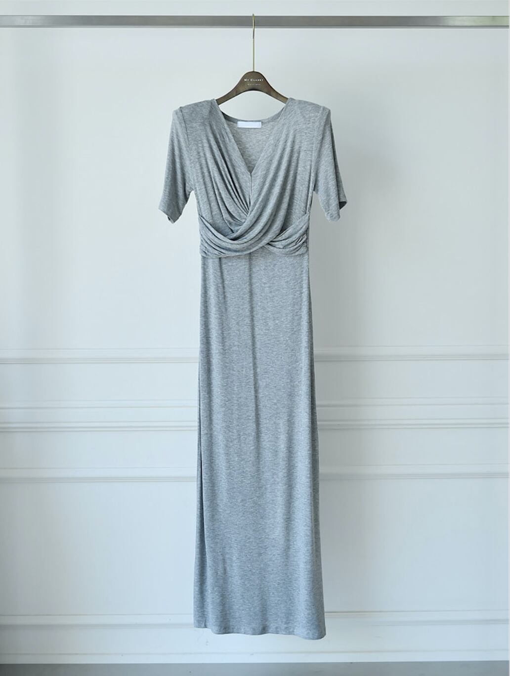 柔軟性のある生地のマキシワンピース。