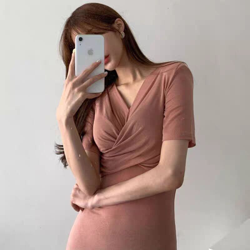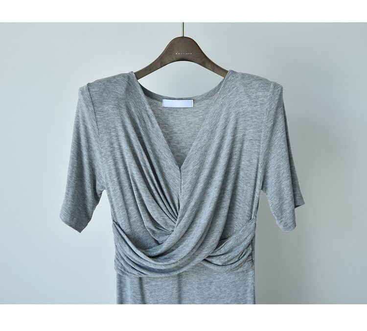 ワンピース 上着 人気 おすすめ おしゃれ お洒落 激安 安い 送料無料 プチプラ 半袖 Vネック タイト ロングスカート ウエスト カシュクール 無地 コットン 綿 ポリエステル 韓国 シンプル きれいめ 大人 上品 春 スプリング サマー 夏 レディース 女性用 20代 30代 S M L 黒 ブラック 灰色 グレー 桃色 ピンク デート フェミニン セクシー お出かけ スポーティー