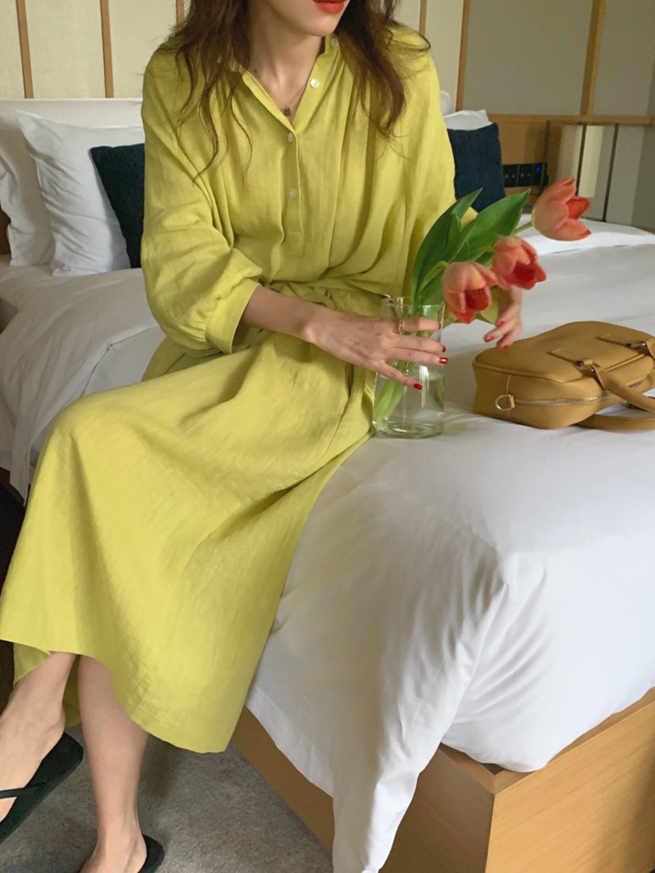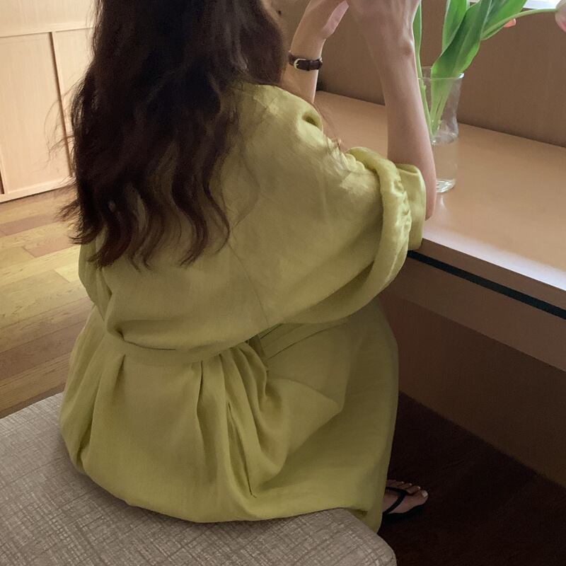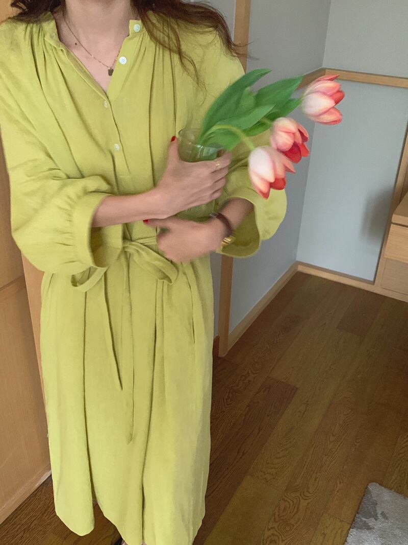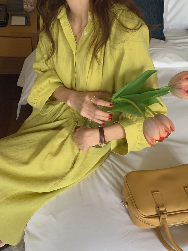 ランタンスリーブ ロング丈 ワンピース クルーネック ハイウエスト リボン ゆったり フレア くすみカラー 華奢見え かわいい 大人可愛い きれいめ シンプル カジュアル 大人 上品 おしゃれ お洒落 かっこいい 大人可愛い 大人女子 こなれ感 ラフ ラブリー キュート ガーリー ルーズ モード系 マタニティ 20代 30代 40代 レディース 着回し 普段使い 重ね着 韓国系 オルチャン ファッション コーデ 体系カバー 激安 流行 インスタ映え イエロー 黄