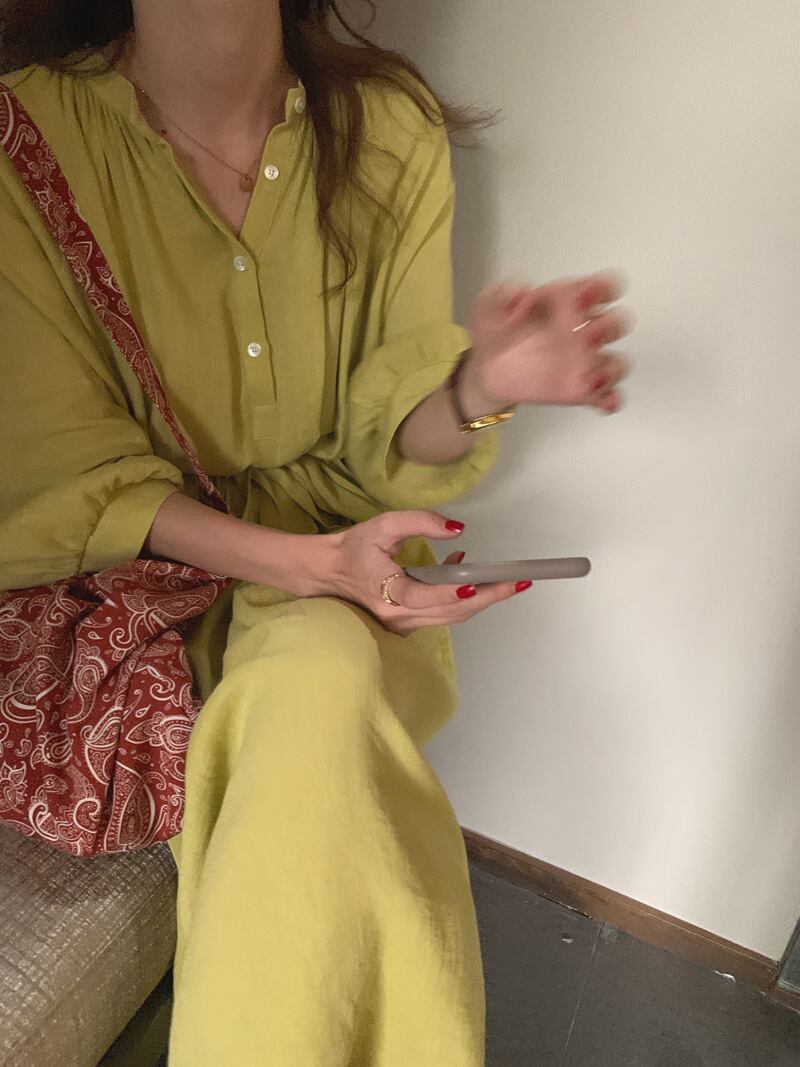 落ち着いた色合いのイエローが大人っぽくおしゃれなロング丈ワンピースです。