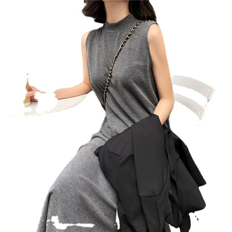ワンピース 上着 人気 おすすめ おしゃれ お洒落 激安 安い 送料無料 プチプラ リブニット 肩出し ノースリーブ ミモレ丈 柔軟性 ロングスカート ラウンドネック 丸首 無地 可愛い かわいい 韓国 シンプル カジュアル 春 スプリング サマー 夏 秋 オータム アウトドア レディース 女性用 20代 30代 M L XL 2XL 3XL ゆる 灰色 グレー 大人カラー モノトーン デート 旅行 楽ちん