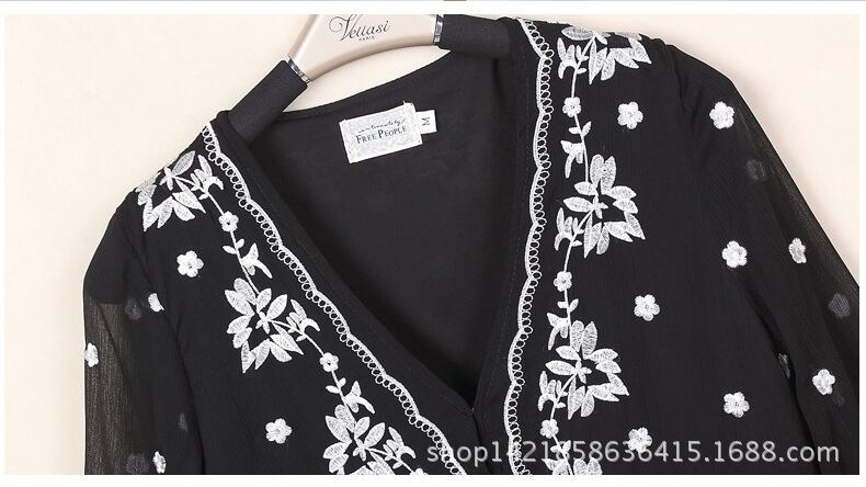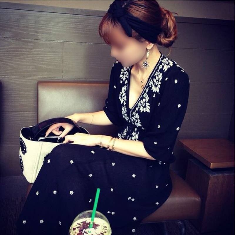 細かく散りばめられた刺繍がおしゃれなロング丈ワンピースです。