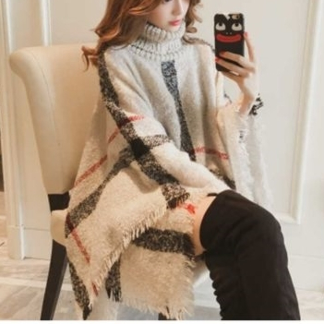 ブラウスからTシャツまでレイヤードスタイルにぴったりのポンチョ風ニット。