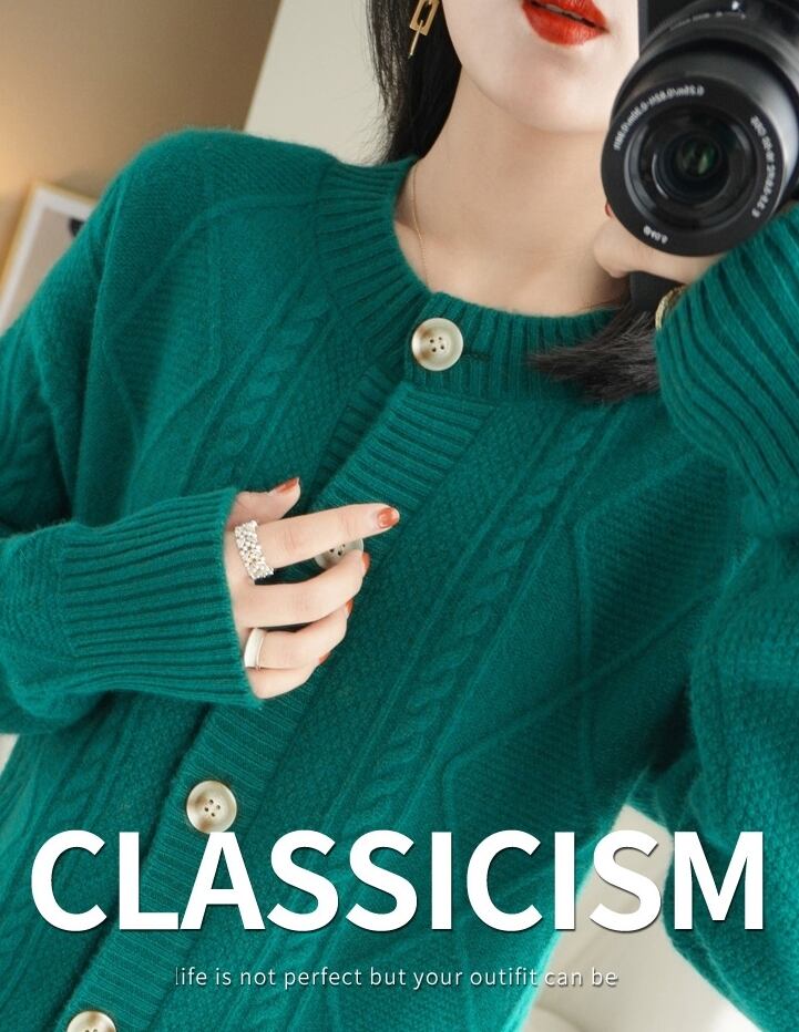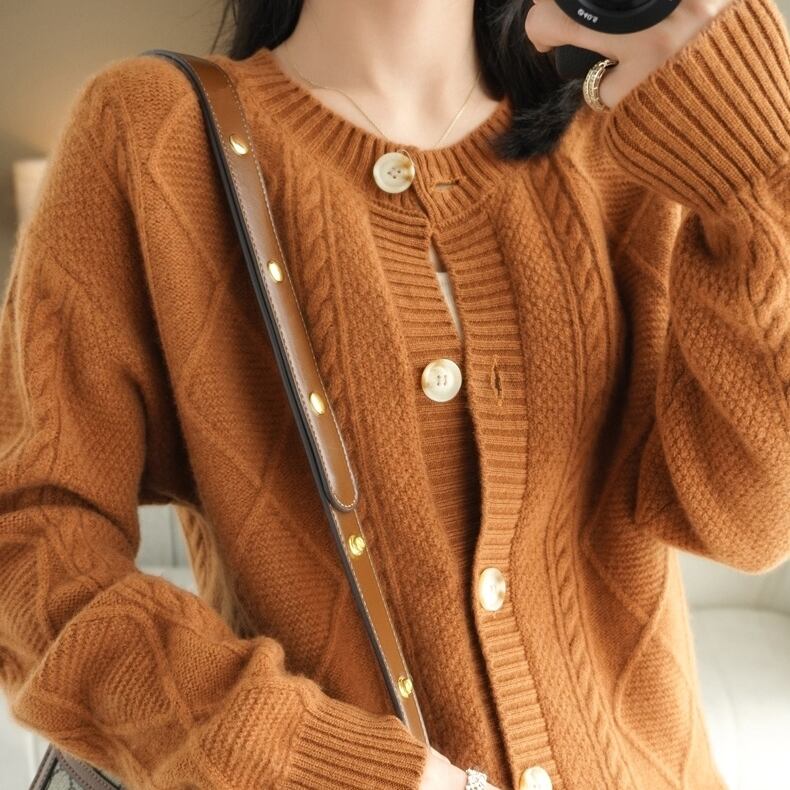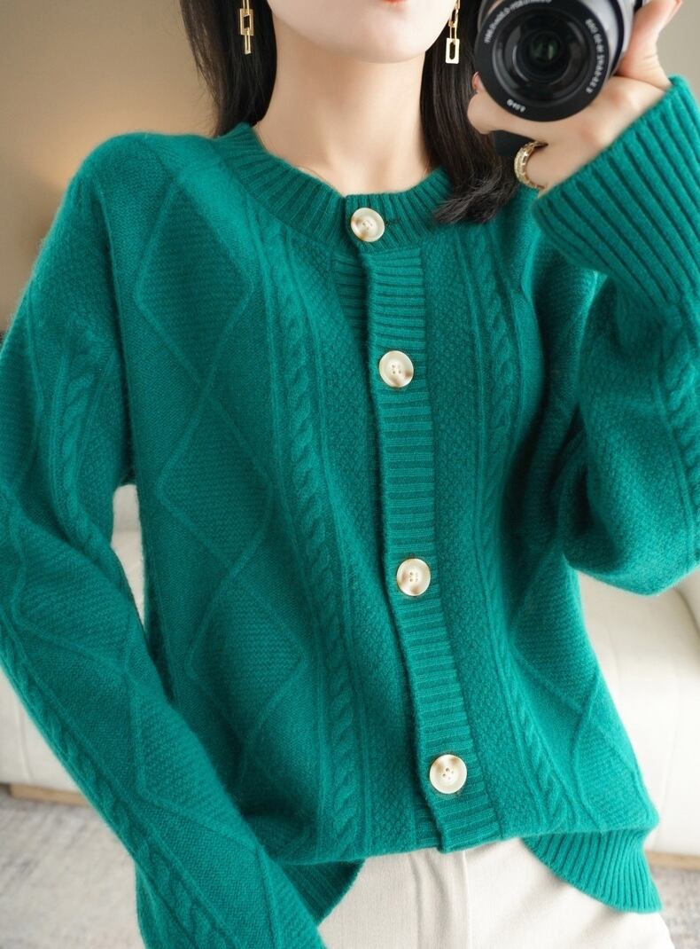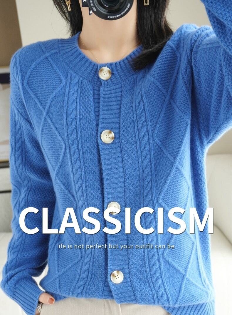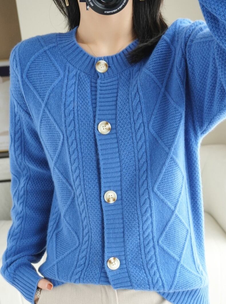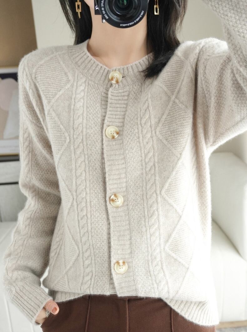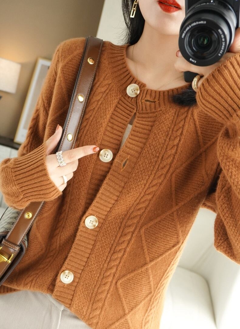 幾何学パターンがクラシックなカーディガンです。