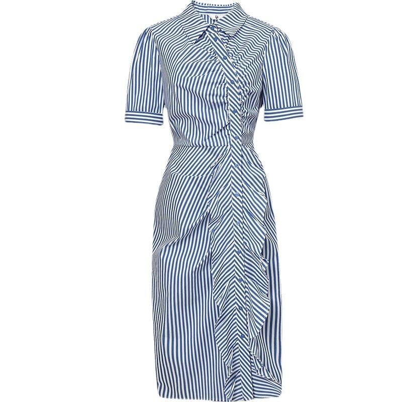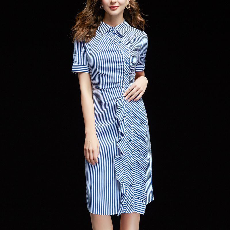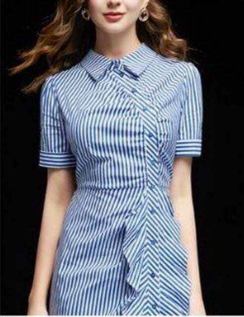 ワンピース 上着 人気 おすすめ おしゃれ お洒落 激安 安い 送料無料 プチプラ 半袖 スタンドカラー 柄 襟 タイト 膝丈 ストライプ フリル プリント コットン 綿 韓国 きれいめ 高品質 大人 上品 フォーマル 春 スプリング サマー 夏 レディース 女性用 20代 30代 M L XL 2XL 3XL 白 ホワイト 青 ブルー 春カラー デート フェミニン