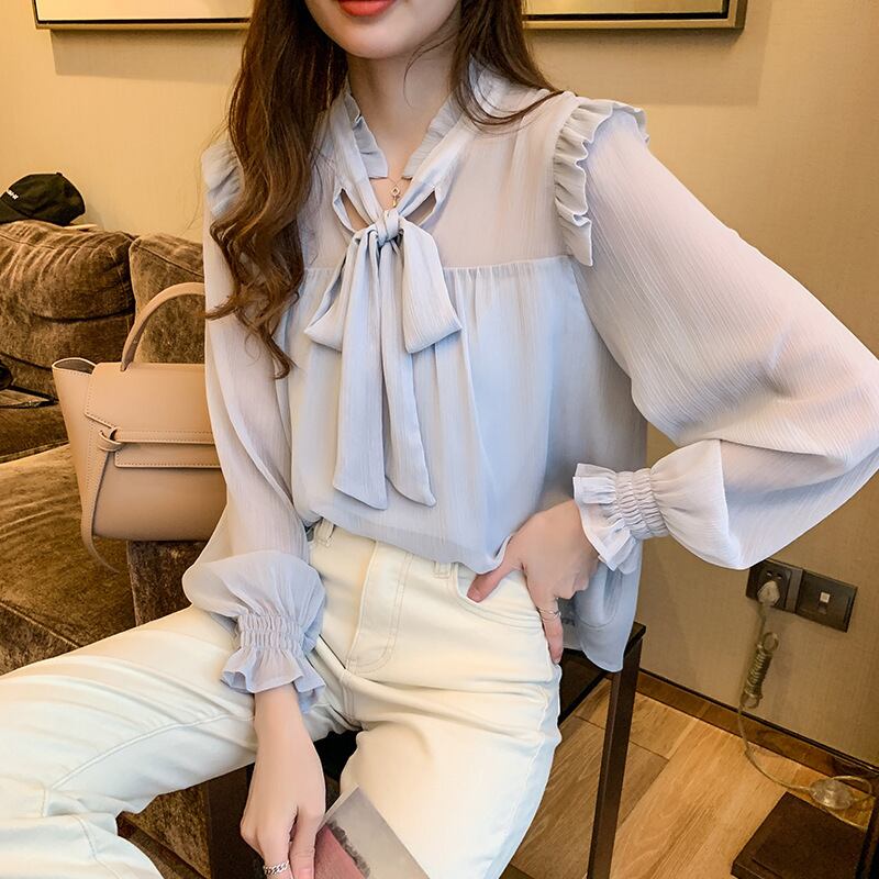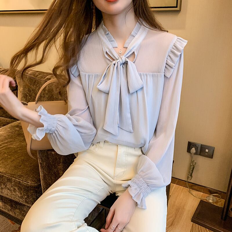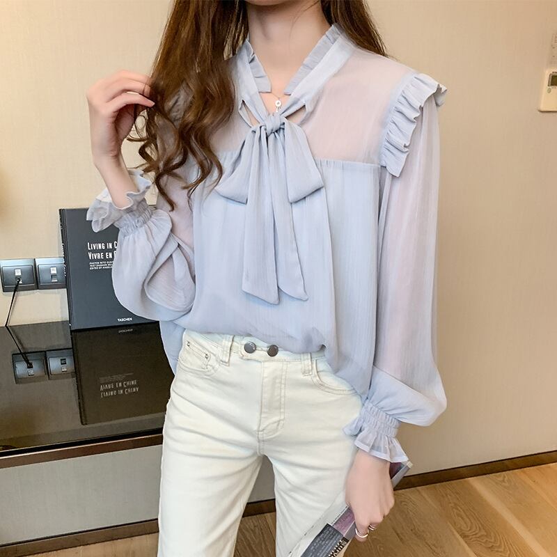 ブラウス シアー シャツ レディース シャツ トップス 人気 おすすめ おしゃれ お洒落 激安 安い 送料無料 プチプラ 長袖 ロング シースルー シフォン 美シルエット 華奢見え フリル スタンドカラー Vネック リボン 無地 薄手 新作 可愛い かわいい 韓国 大人 上品 きれいめ クラシック エレガント こなれ感 ラグジュアリー フェミニン モテ 女子会 デート オフィス お出かけ 春 夏 20代 30代 OL S M L XL 2XL 青 ブルー